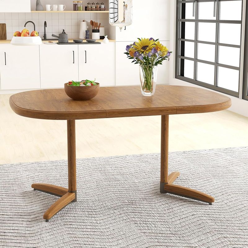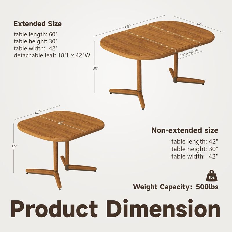 Chromcraft Dining Table for 4 to 6 Person, Extendable Wooden Kitchen Room Dining Table with 18" Extension Leaf, Expandable Table for Kitchen(Chestnut)