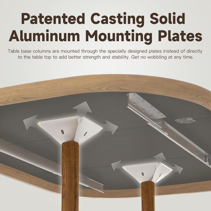 The table features CHROMCRAFT exclusive design patented mounting plates installed on the underside, allowing the table base to be attached to the underside High Pressure Laminate via the mounting plate instead of directly mounting under the table panel. This design prevents damage to the solid wood panel of the table and ensuring its integrity.
