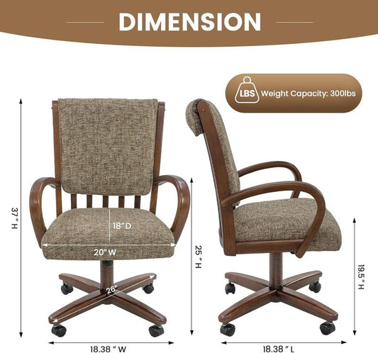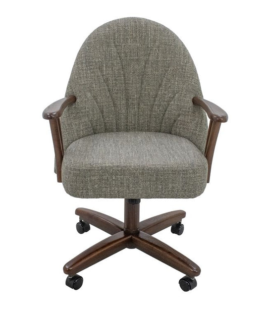 Chromcraft ZIP Ship CM127 Casual Dining Chair Caster Swivel Tilt Fabric Dinning Chair in Walnut Finish