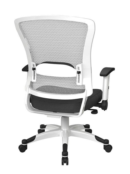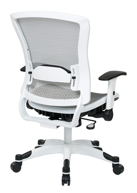 White Frame Manager’s Chair with Breathable Mesh Seat and Back, Adjustable Padded Flip Arms and Coated Nylon Base