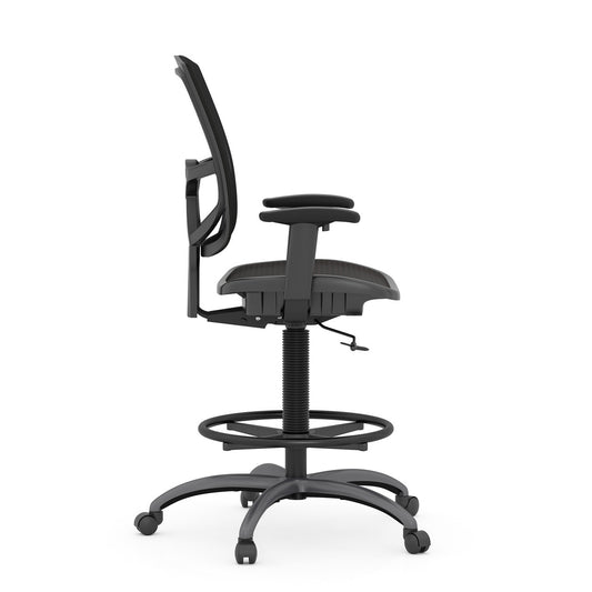 OfficeSource | CoolMesh Pro Collection | All Mesh Task Stool with Adjustable Arms and Footring with Black Frame