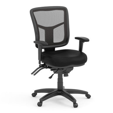 OfficeSource | CoolMesh Basic | Task Chair with Black Leather Seat and Black Frame