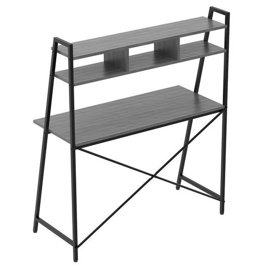OfficeSource | Any Space WFH | Black Metal Frame Desk with Hutch & Two-Tier Shelves