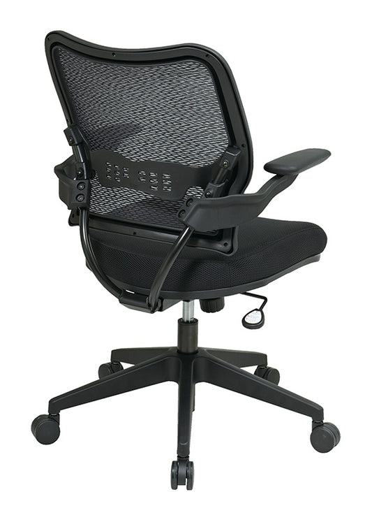 Breathable Mesh Seat and Back Executive Chair w/Top Grain Leather Trim, Adjustable Lumbar Support, Height-Adjustable Flip Arms, Industrial Steel Finish Base