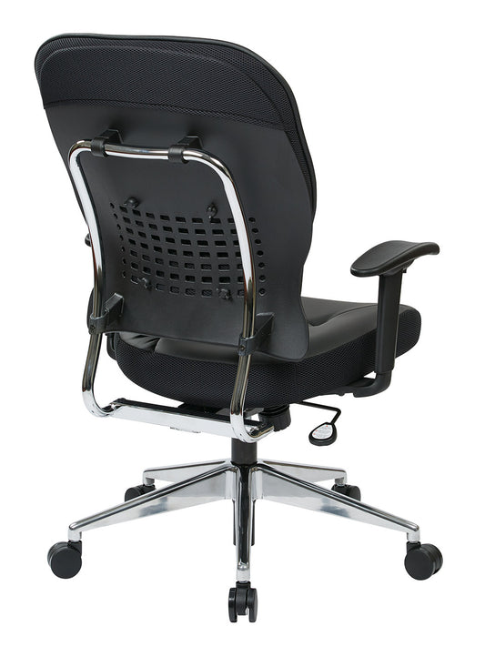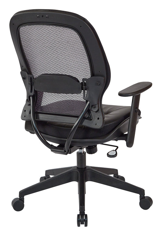 Breathable Mesh Back and Bonded Leather Seat Manager’s Chair with Adjustable Arms, Adjustable Lumbar and Industrial Steel Finish Base