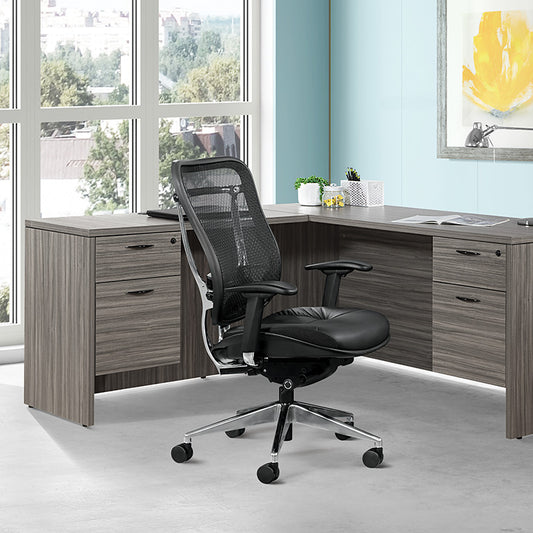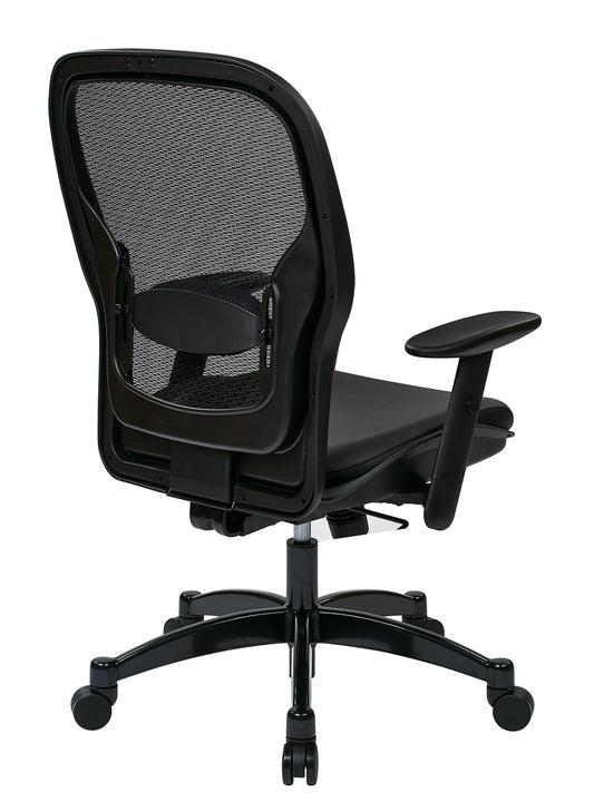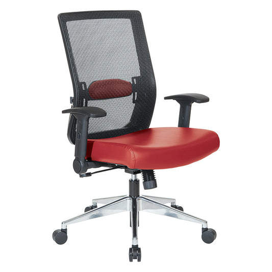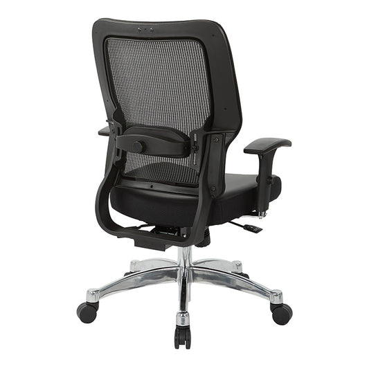 Breathable Mesh Back and Bonded Leather Seat Manager’s Chair with Adjustable Arms, Adjustable Lumbar and Industrial Steel Finish Base