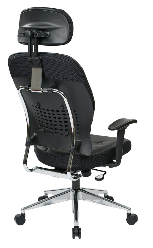 Breathable Mesh Back and Leather Seat Manager’s Chair with Headrest, Adjustable Arms, Adjustable Lumbar and Industrial Steel Finish