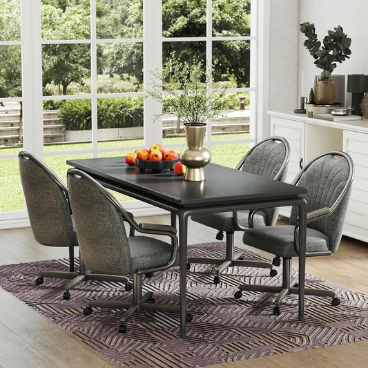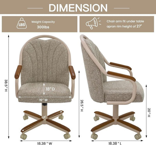 Chromcraft Douglas D1162 Casual Dining Chair Caster Swivel Tilt Fabric Dinning Chair with CAMEL PU