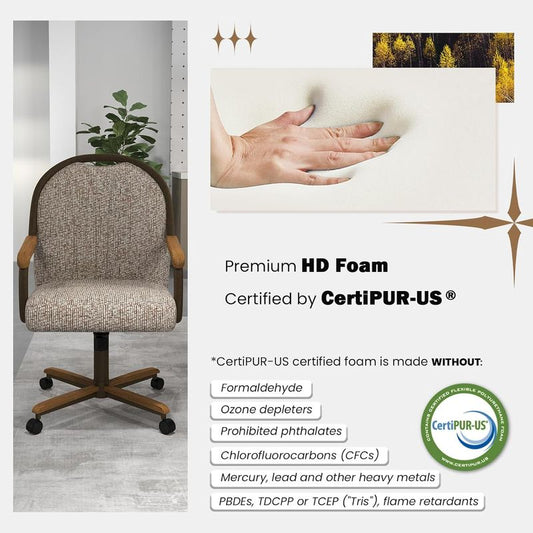 Chromcraft Douglas D7775 Casual Dining Chair Caster Swivel Tilt Fabric Dinning Chair in Chestnut Wood and Texture Bronze Metal Finish