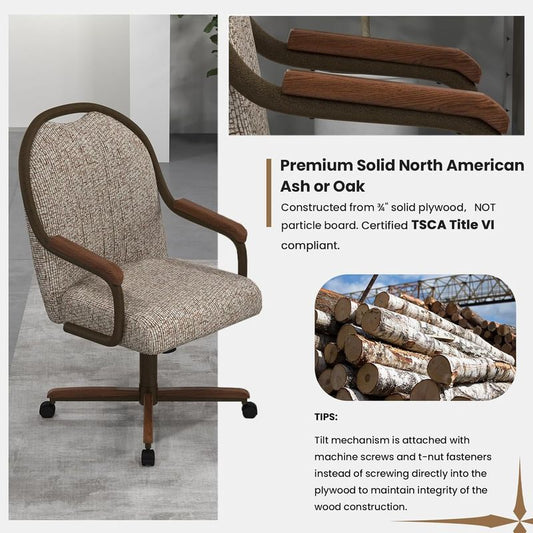 Chromcraft Douglas D7775 Casual Dining Chair Caster Swivel Tilt Fabric Dinning Chair in Walnut Wood and Texture Bronze Metal Finish (Mocha Fabric)