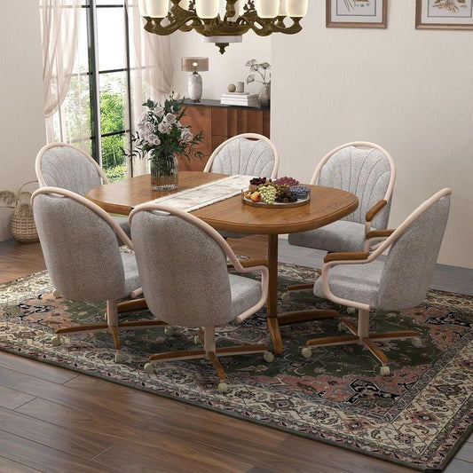 Chromcraft Douglas D7775 Casual Dining Chair Caster Swivel Tilt Fabric Dinning Chair in Chestnut Wood and Light Sand Metal Finish