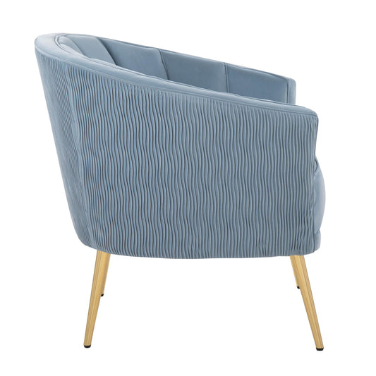 Majestic Office Furniture Pleated Waves Contemporary/Glam Accent Chair in Gold Steel and Light Blue Velvet