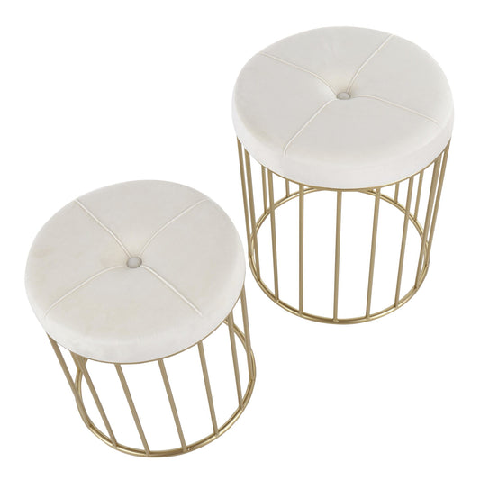 Majestic Office Furniture Glam Pleated Bench in Gold Steel and Cream Velvet
