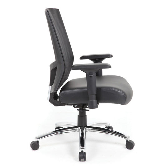 OfficeSource | CoolMesh Pro Collection | Mesh Back Task Chair with Leather Seat, Adjustable Arms and Black Frame