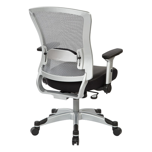 Professional Light AirGrid® Back Chair w/Black Bonded Leather Seat, Memory Foam, Platinum Finish Flip Arms & Platinum Coated Base w/Black End Caps