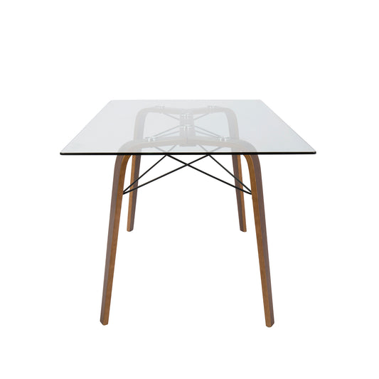 Majestic Office Furniture Mid-Century Modern Dining Table in Walnut and Clear Glass