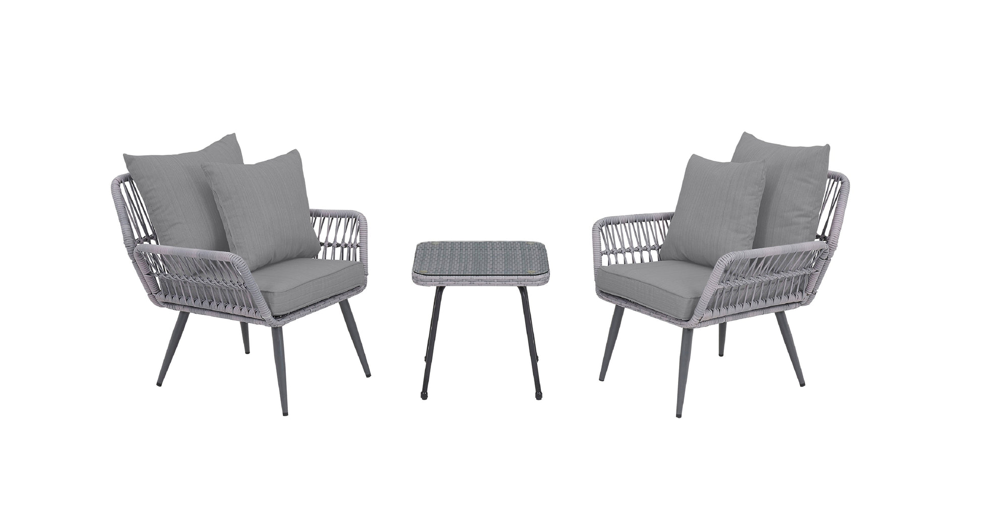 - Modern 3-Piece Outdoor Patio Set with 2 Armchairs and 1 End Table.