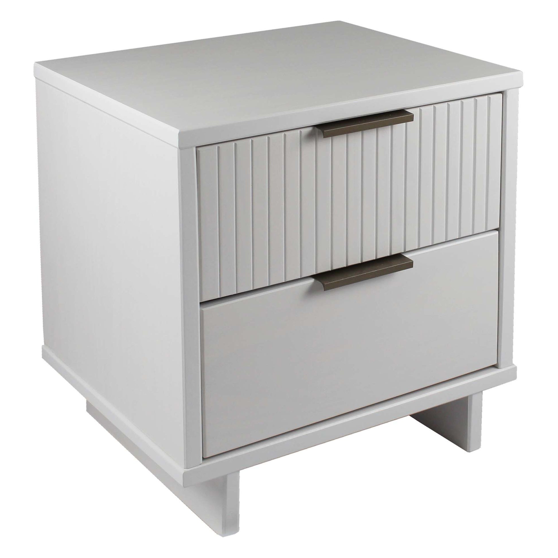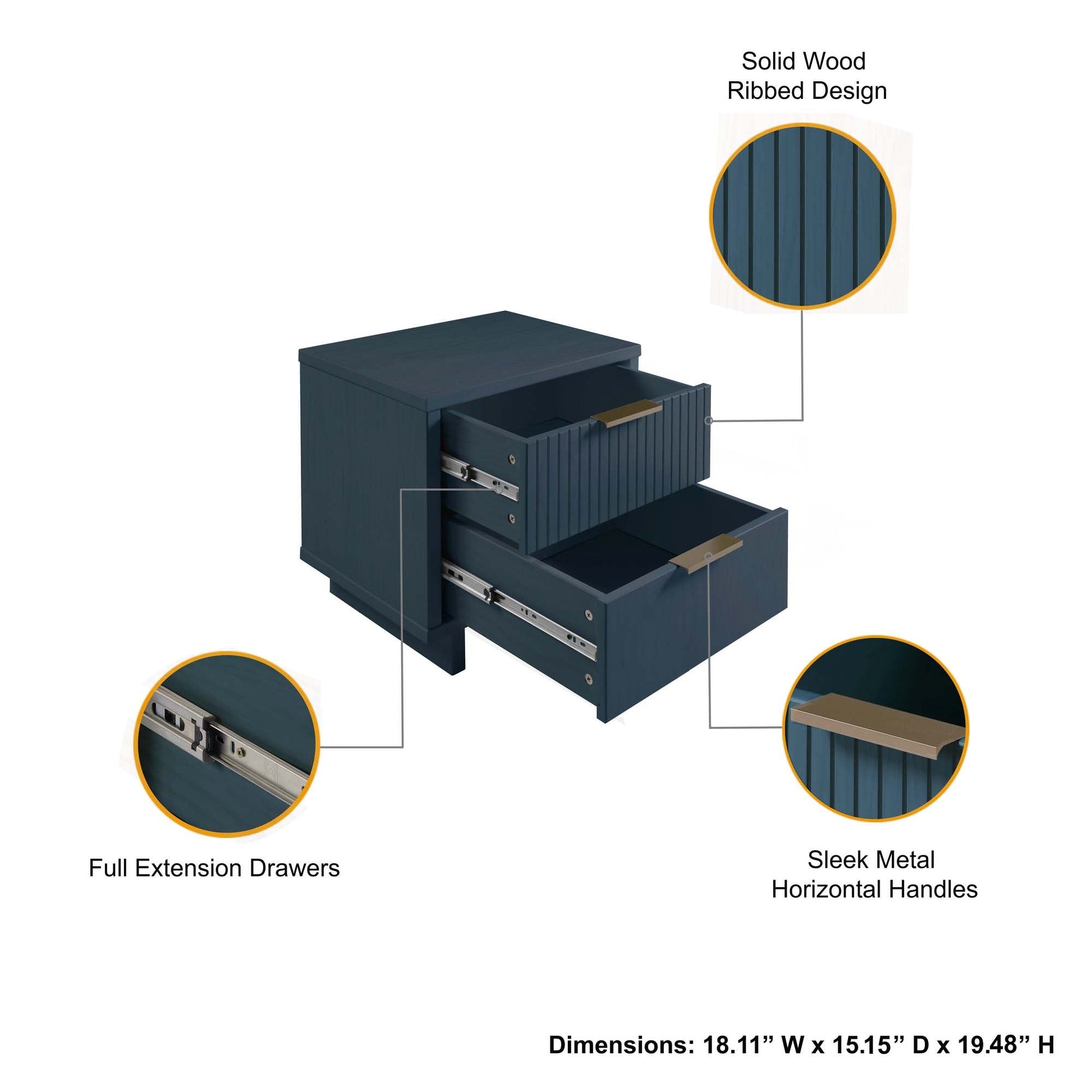 - Includes Full Extension Drawers with Top Drawer Designed in Vertical Textured Ribbed Lines Made from Solid Wood.