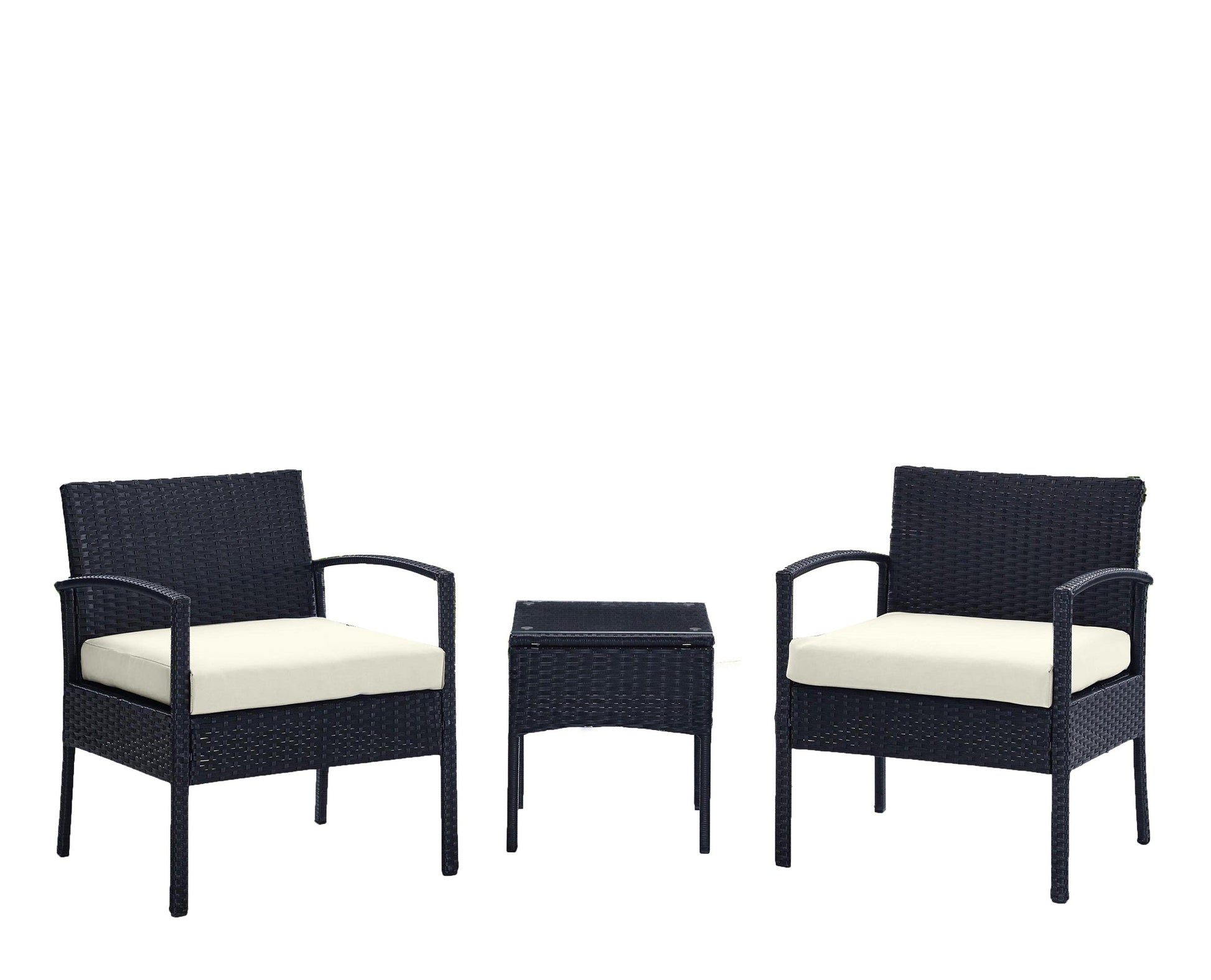- Modern 3-Piece Outdoor Patio Set with 2 Armchairs and 1 End Table.