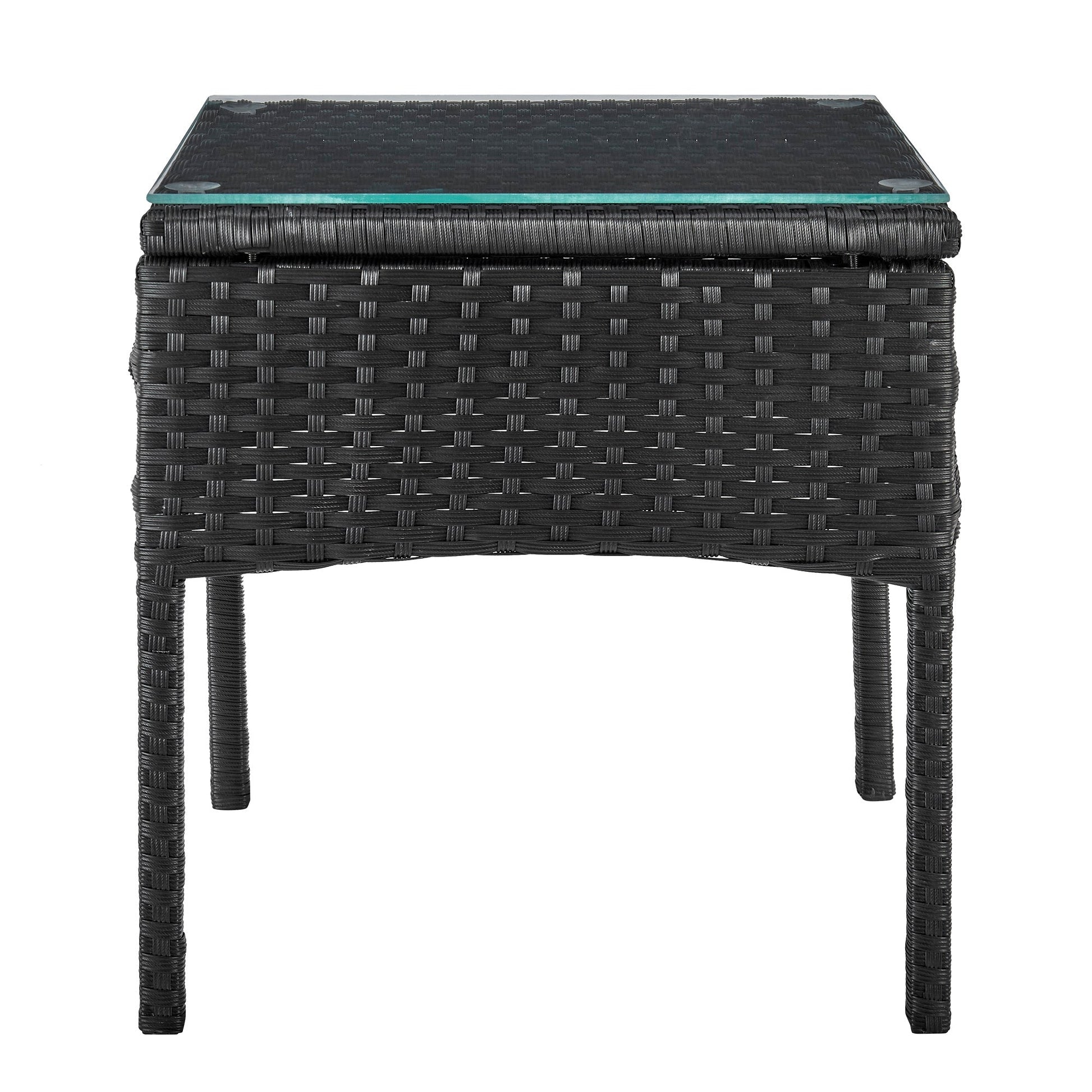 Modern with a classic feel, this chic outdoor set for two is as practical as it is trendy. Perfect for creating that cozy alcove or updated outdoor nook, you can now enjoy a glass of wine and your favorite book in comfort and style. A compact end table holds essentials, while chairs are comfortable with armrests and removable, water-resistant, easy-to-clean cushions that make them fun to style. Revel in a night in and the perfect space to enjoy the moment. It looks great poolside or on the patio, taking the backyard up a notch in style wherever you decide to style it.