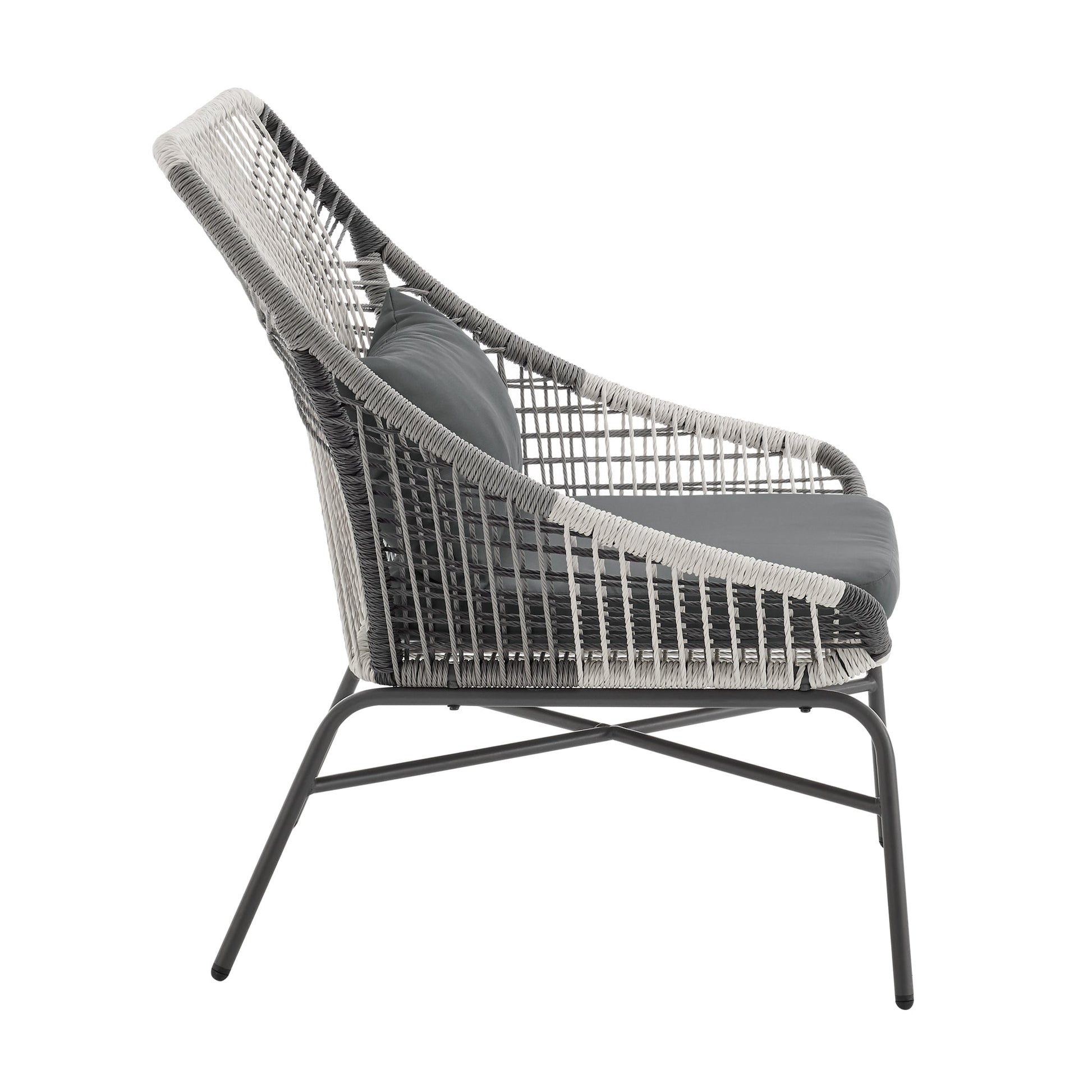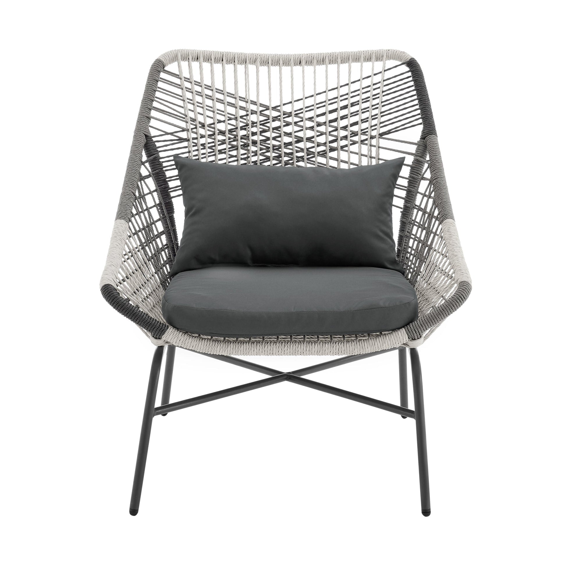 - Frame Made of Rust Resistant Steel Wrapped in PE Rope Perfect for Outdoor Weather.