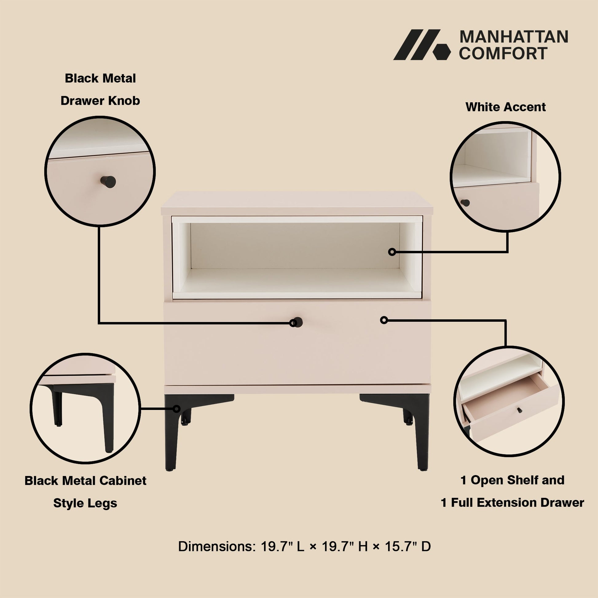 - Includes 1 Open Shelf and 1 Full Extension Drawer.