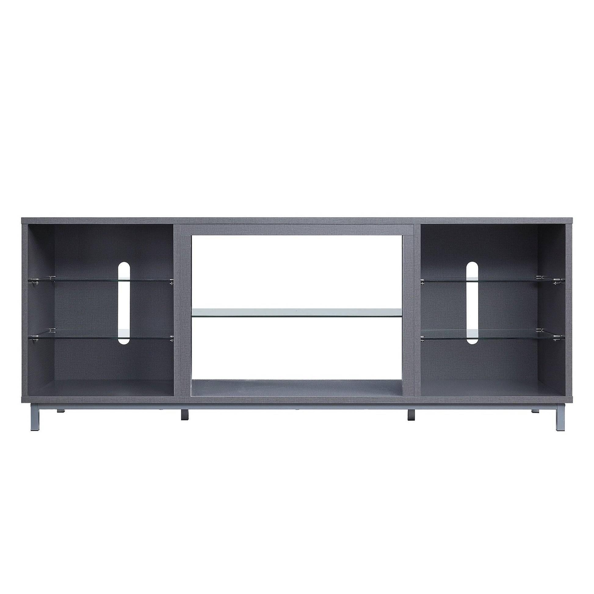 Get fancy and become a pro at entertaining and hosting movie nights in. Movie nights and Sunday football are easy with the modern Brighton TV stand to create the perfect living room mainstay to get cozy and enjoy time with family and friends. Open glass shelving is durable and great for displaying media consoles, favorite books and DVD's, and decorative accents. Add framed photos and plants, pop your TV up, to add light and warmth for hosting memorable moments at home.