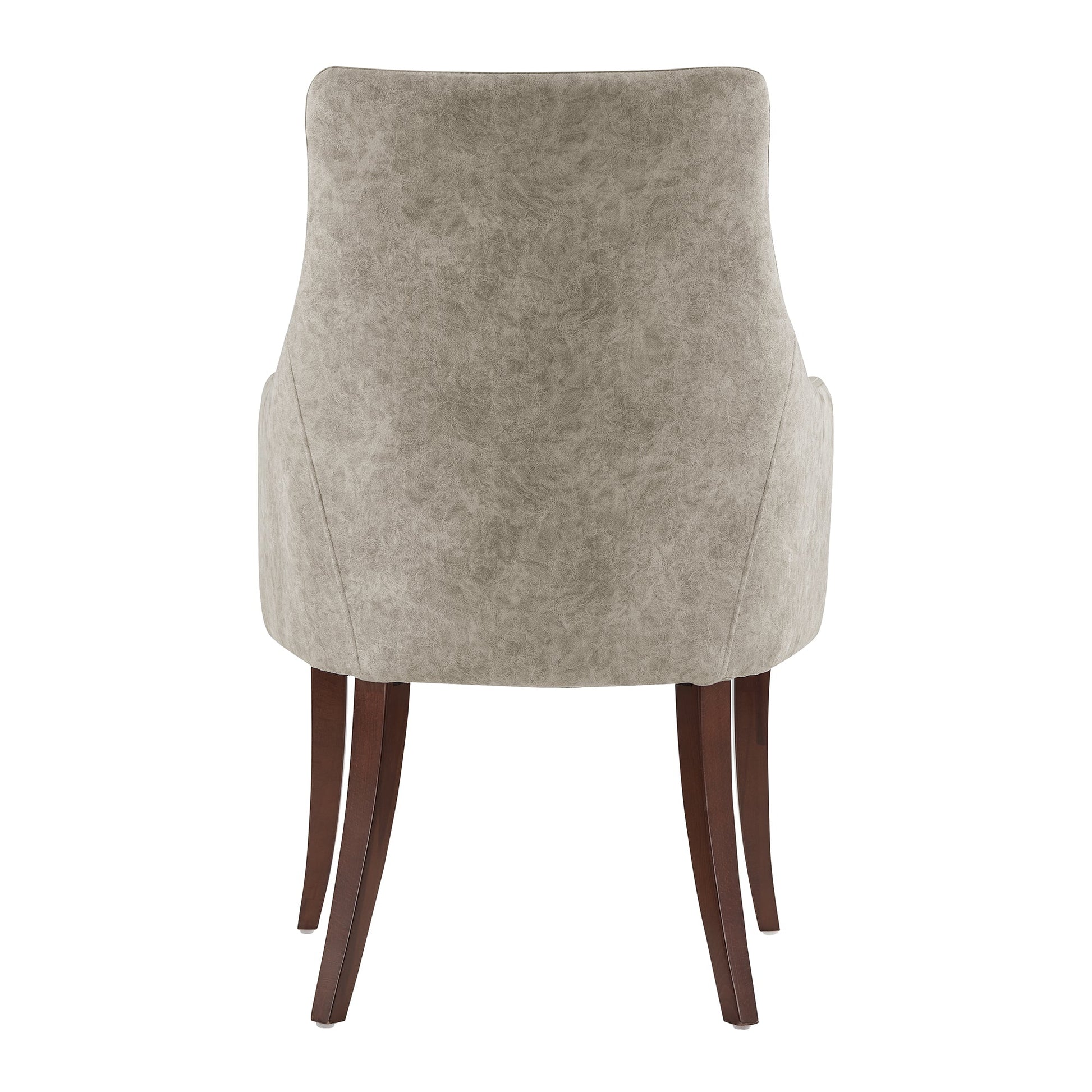 Elevate your dining experience with the refined elegance of these exquisitely crafted dining chairs. Designed for both comfort and style, each chair features a gracefully contoured backrest, enveloped in supple leatherette with a soft, velvet fabric for an alluring textural contrast. Resting on sleek solid wood legs with a warm walnut finish, these chairs bring a touch of sophistication to any dining space. Whether gathered around a candlelit dinner or hosting lively conversations, their plush cushioning ensures luxurious comfort. Transform every meal into a moment of beauty and grace with this timeless seating collection.