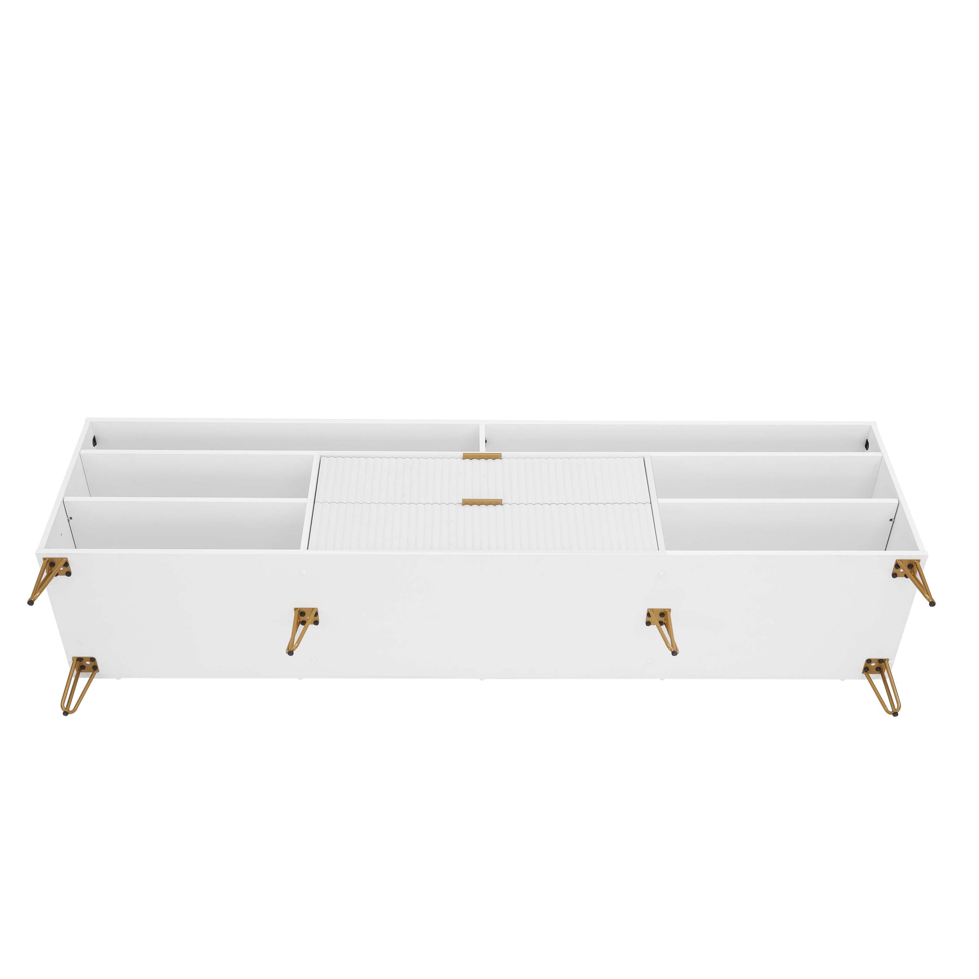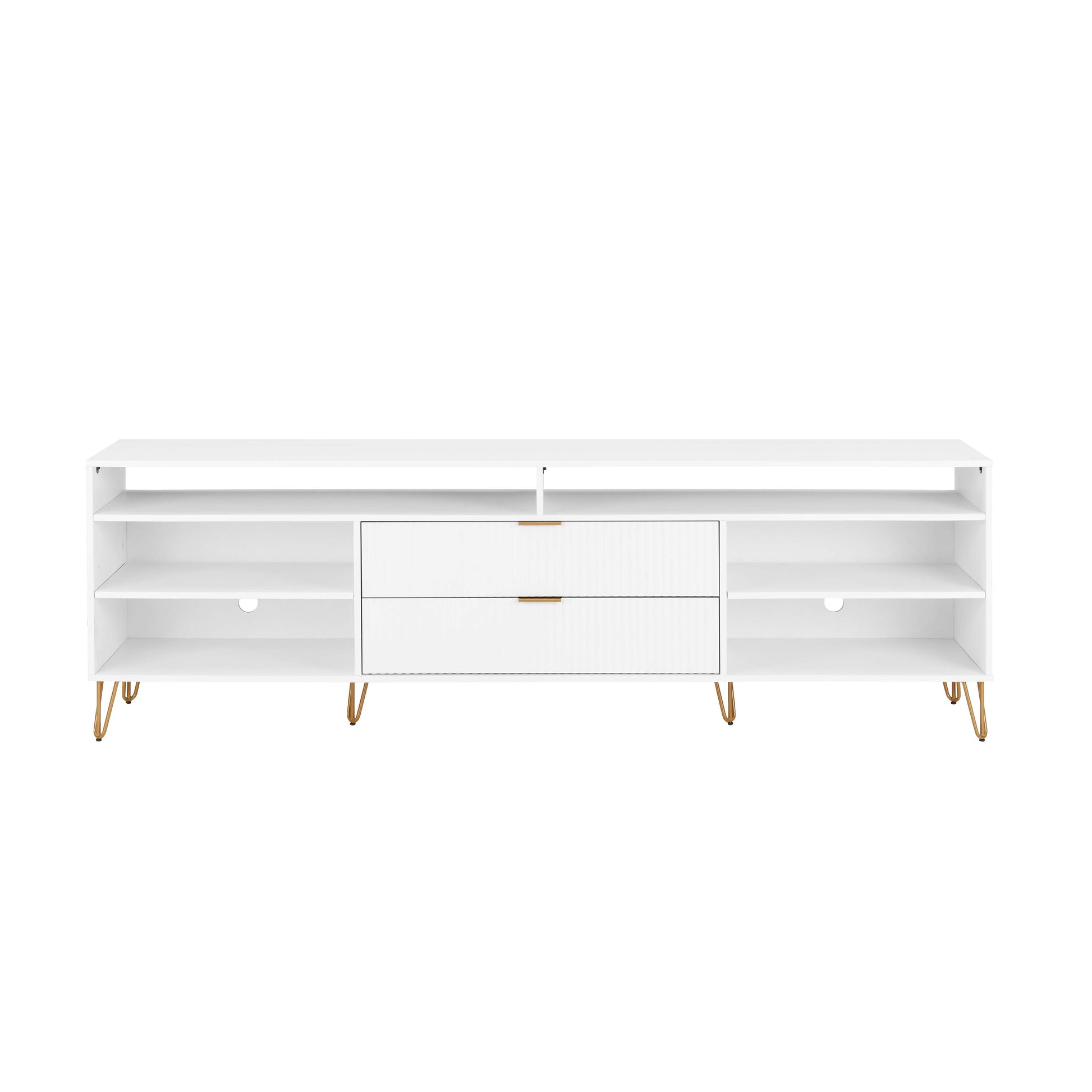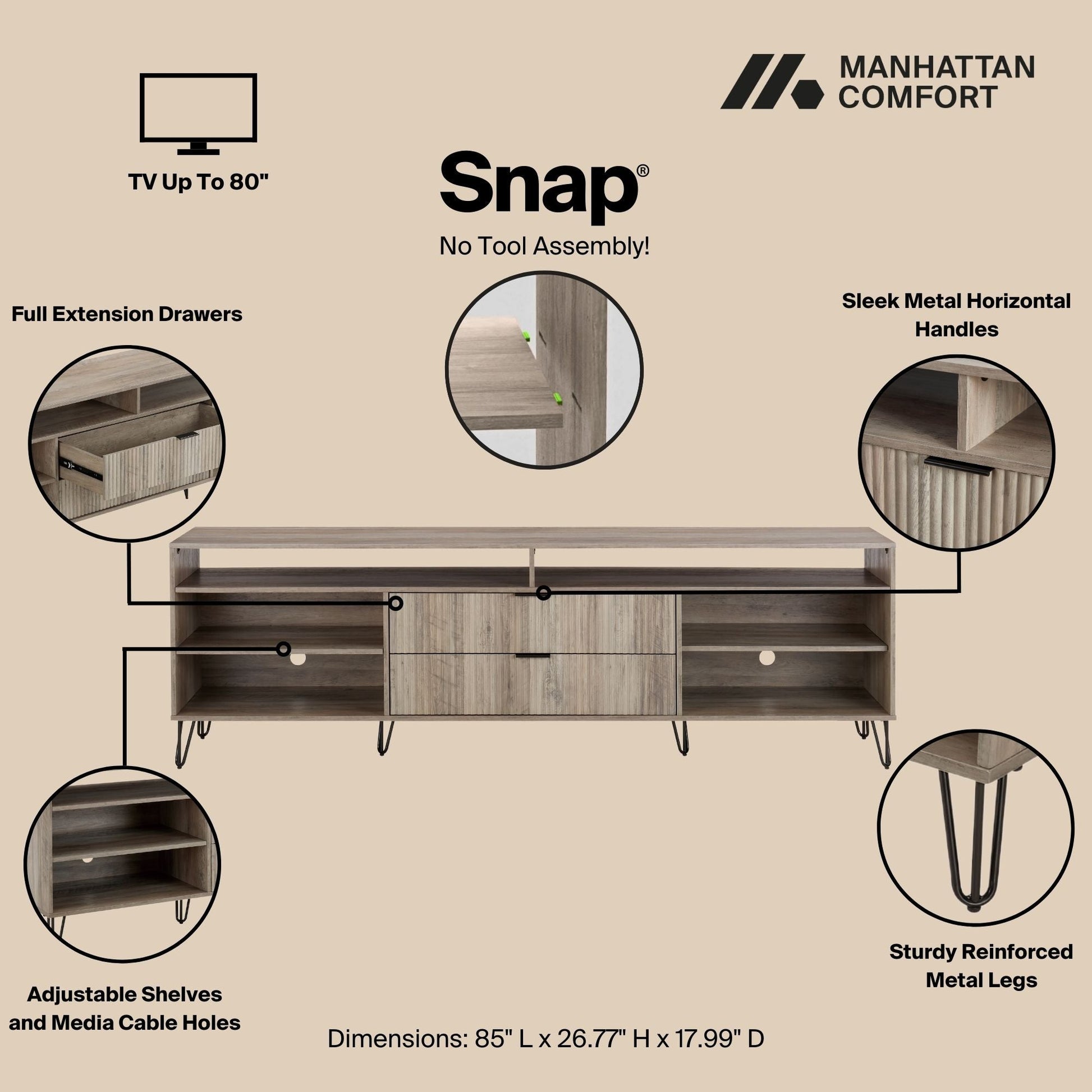 The Manhattan Comfort DUMBO Collection brings tasteful modern glam to your home! This collection features "Snap It" Assembly - no tools required for full assembly of each product! With its unique vertical ribbed drawer fronts, full extension and soft close drawers, and stylish splayed metal legs, the collection is not only a true beauty but also made with quality! Stunning variety of colors with sleek metal horizontal handles available. DUMBO is what you have been looking for all this time! Make your house a home with the DUMBO Collection.