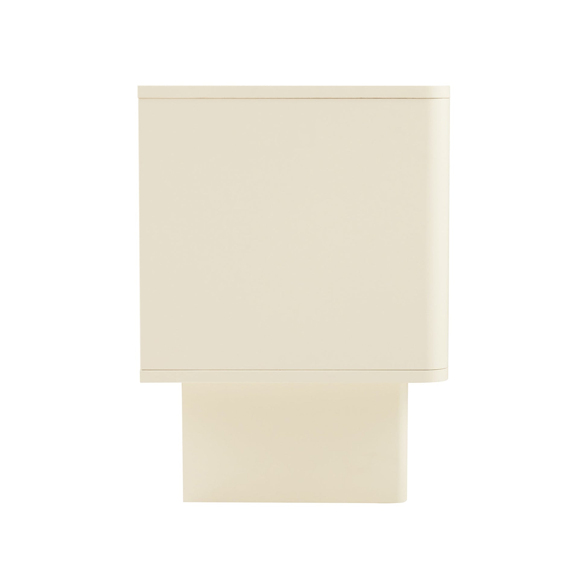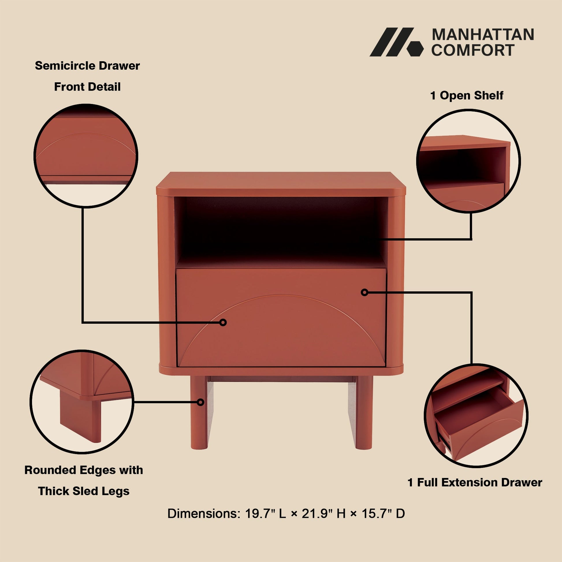 - Includes 1 Open Shelf and 1 Full Extension Drawer with a Raised Semicircle Front Design.