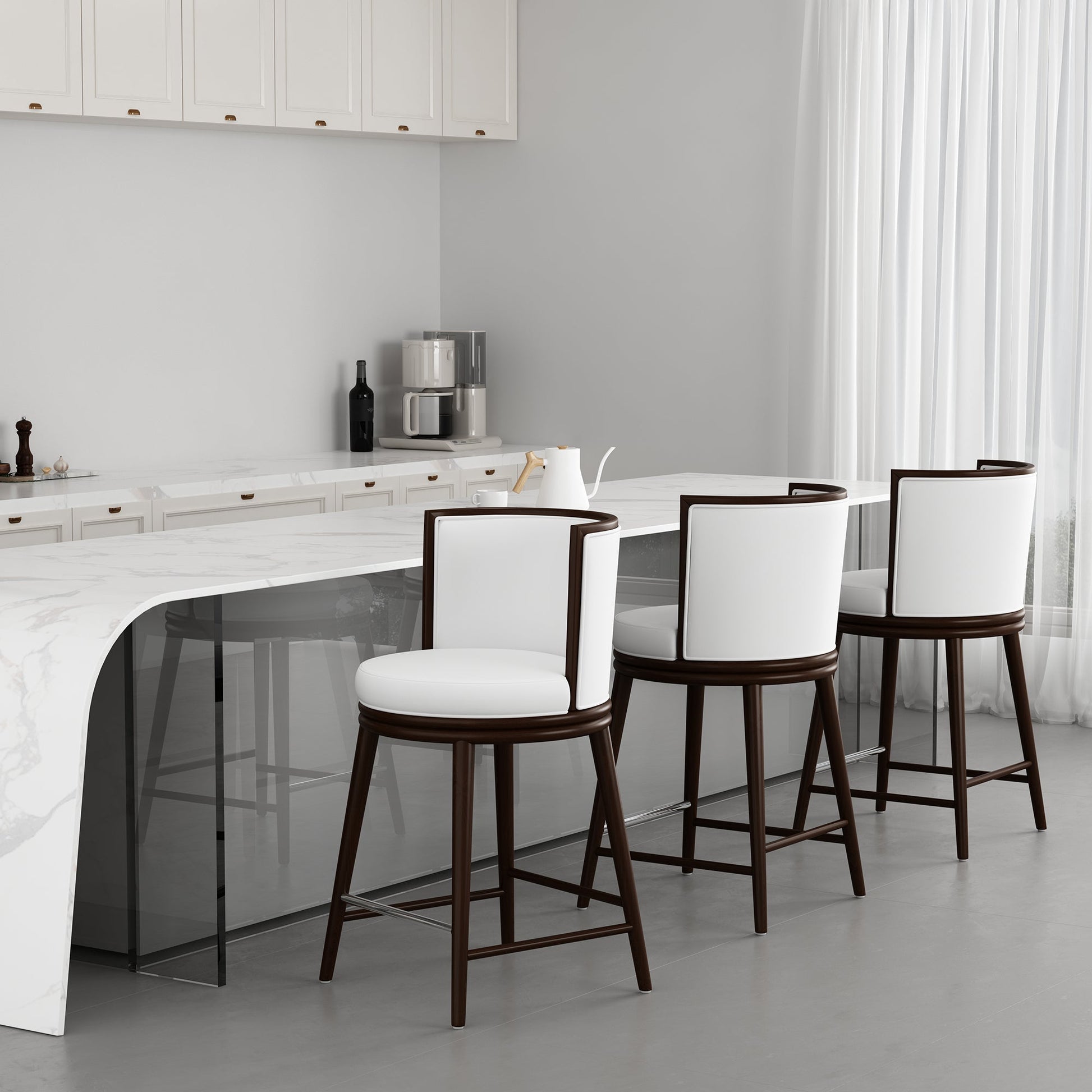 Elevate your home with the timeless elegance of these exquisitely crafted bar and counter stools. Designed with sophistication and comfort in mind, each stool features a sturdy beech wood frame, plush foam cushioning, and sumptuous upholstery that invites you to relax in style. A sleek metal footrest adds a touch of luxury, making this stool a seamless blend of form and function. Whether adorning a modern kitchen island or a chic home bar, these stools bring warmth, refinement, and a statement of contemporary elegance to any space.