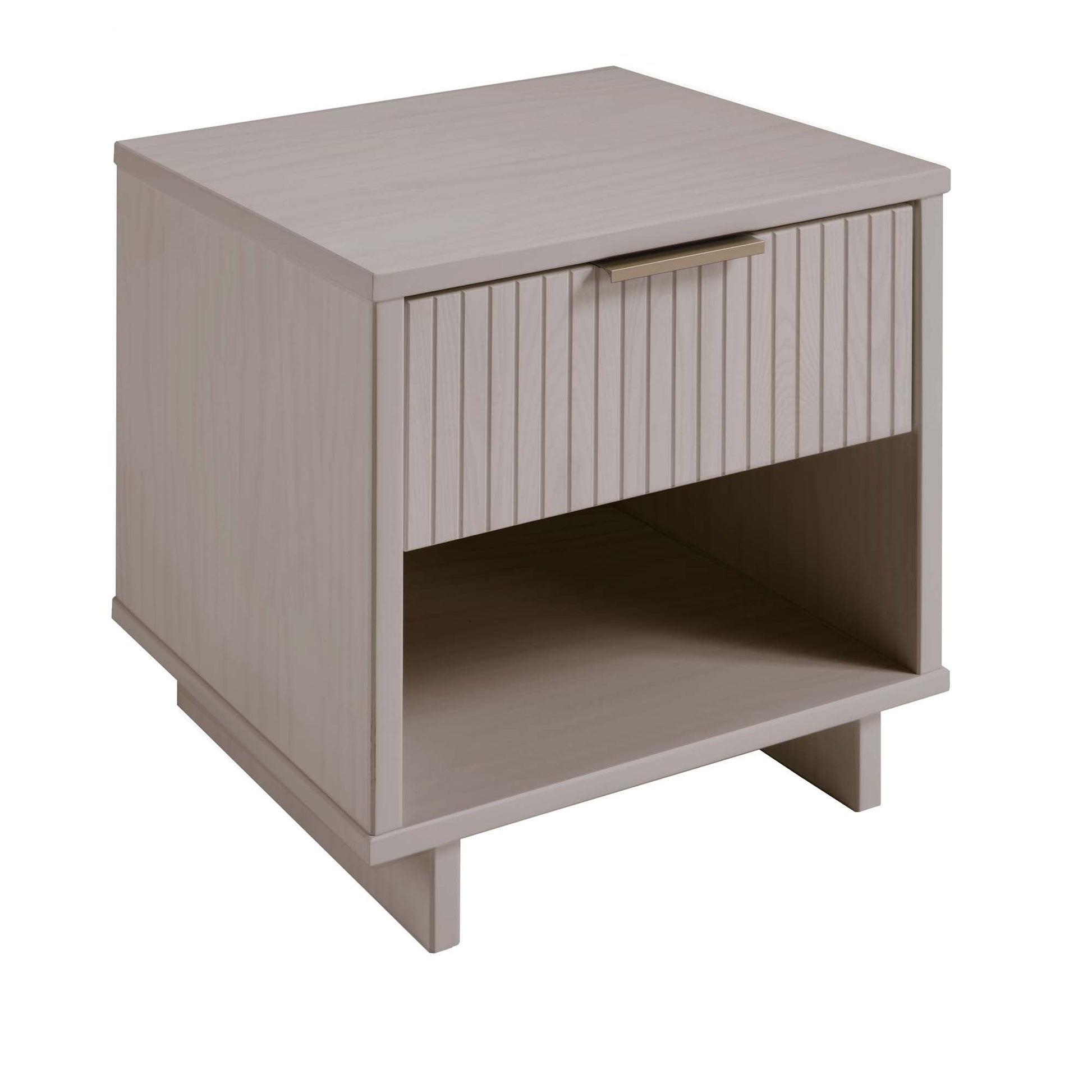 - Includes 1 Full Extension Drawers with Top Drawer Designed in Vertical Textured Ribbed Lines Made from Solid Wood.