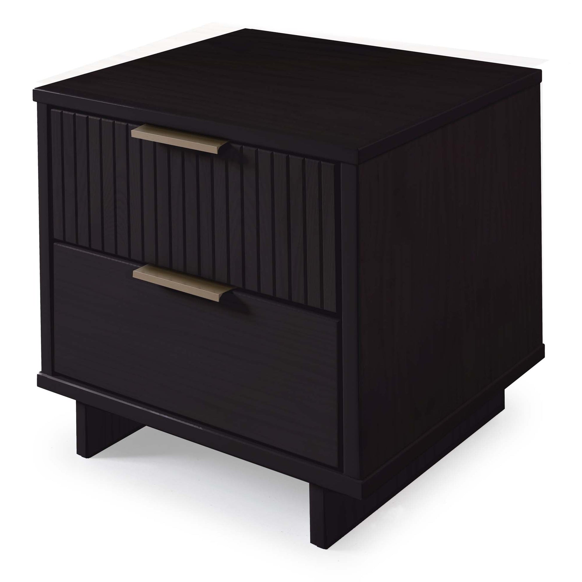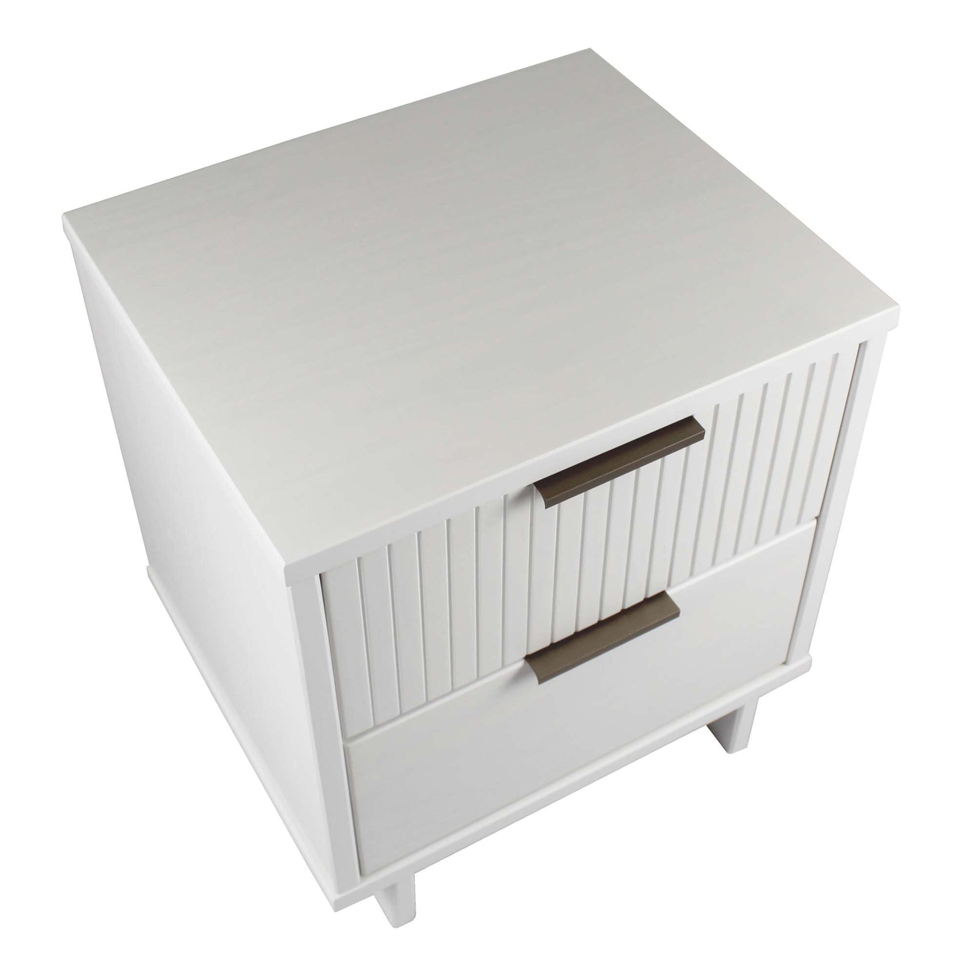 - Includes 2 Full Extension Drawers with Top Drawer Designed in Vertical Textured Ribbed Lines Made from Solid Wood.