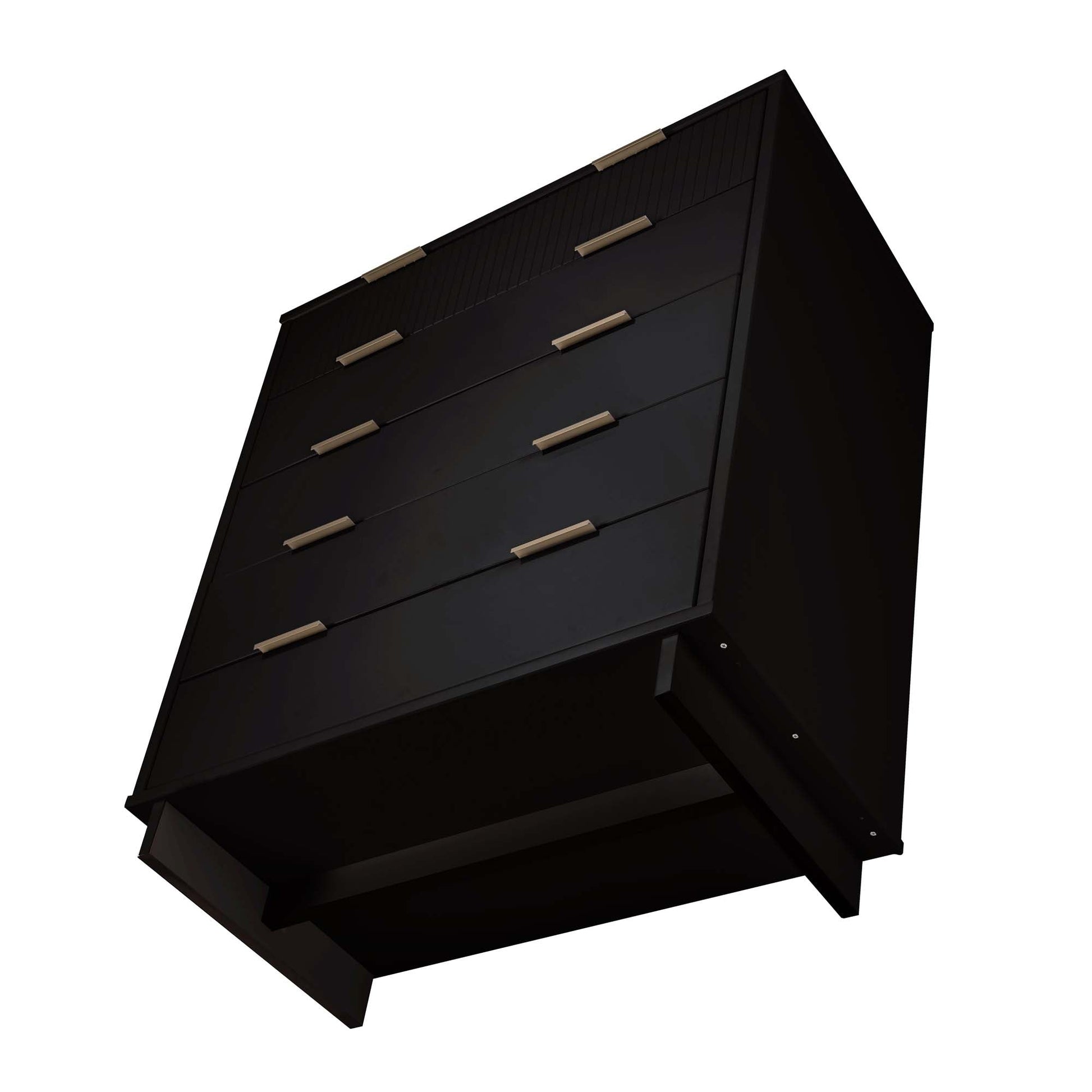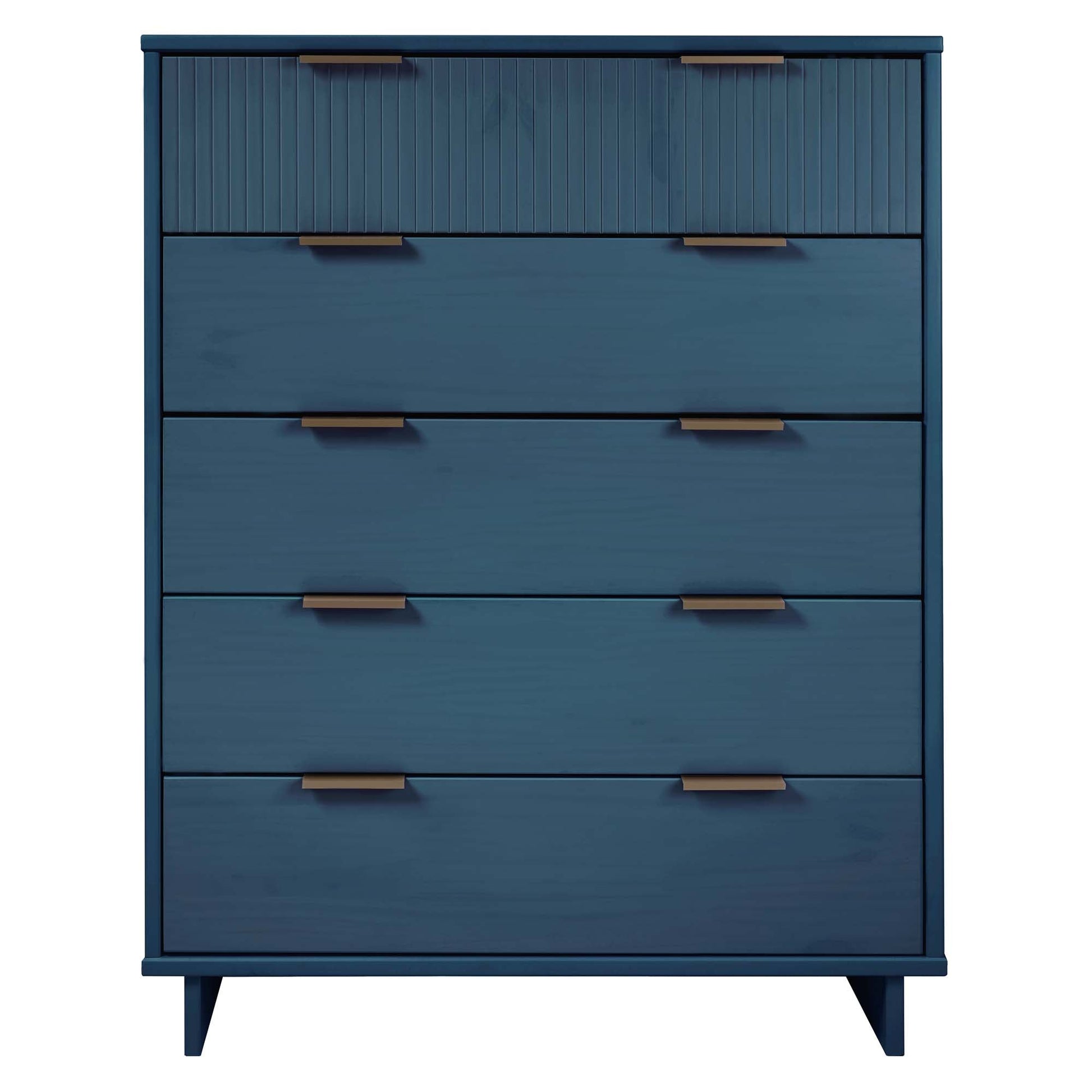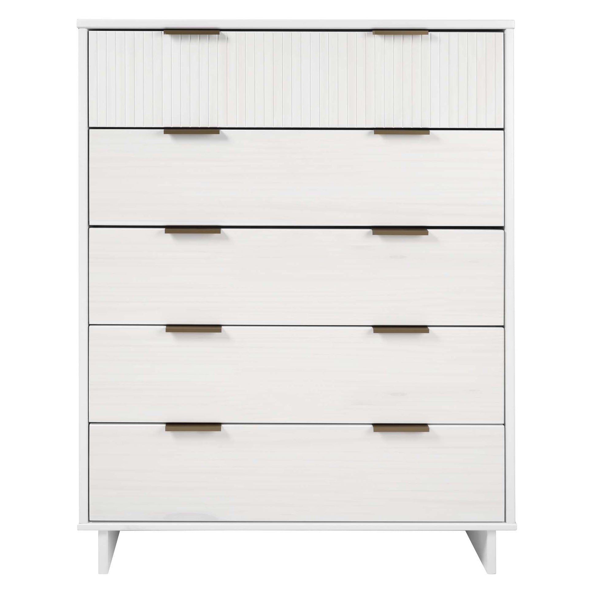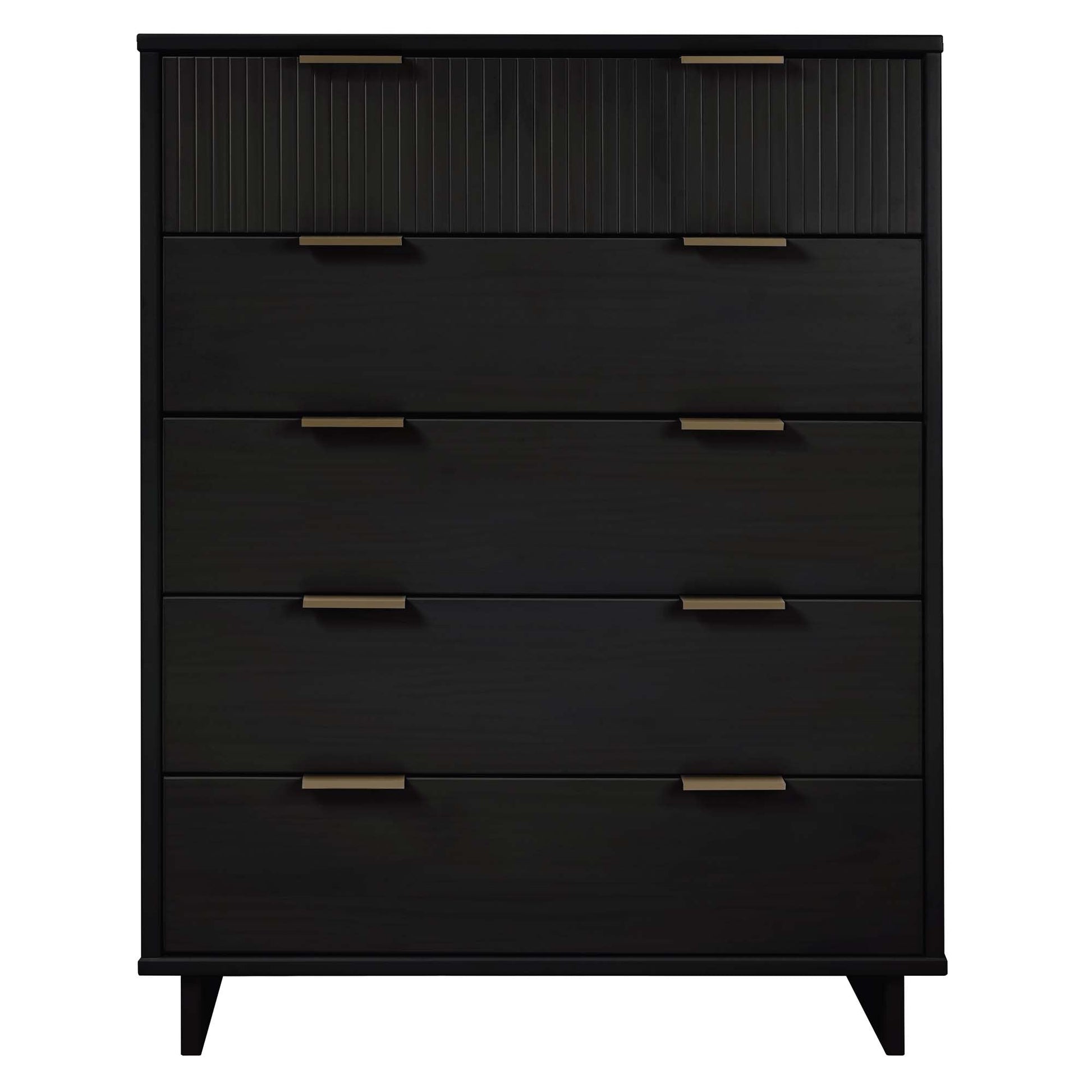 - Includes 5 Full Extension Drawers with Top Drawer Designed in Vertical Textured Ribbed Lines Made from Solid Wood.