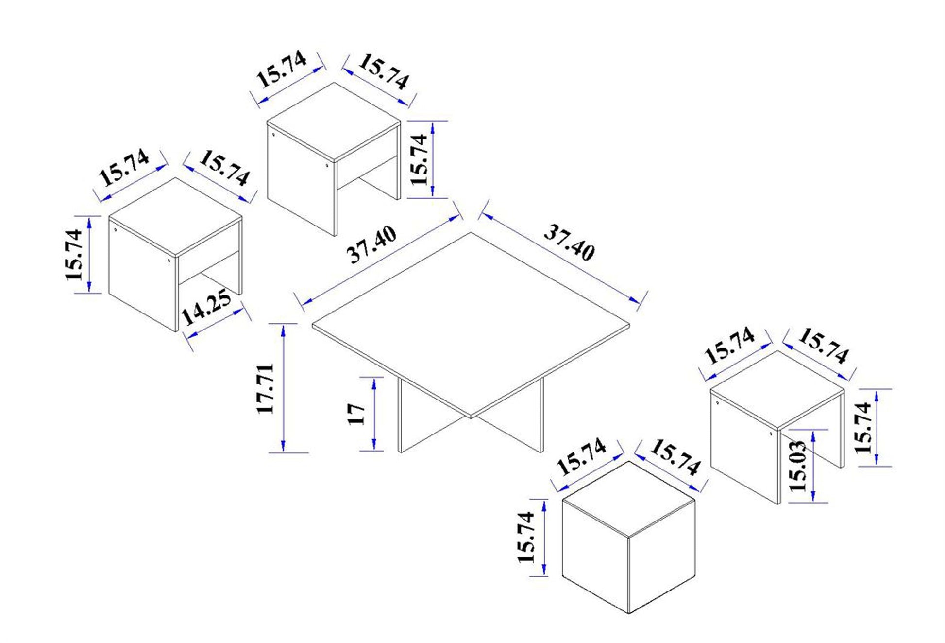 - Upon assembly, Coffee Table and Ottoman Set Dimensions Measure: 37.4 in. Length, 17.71 in. Height, 37.4 in. Depth.