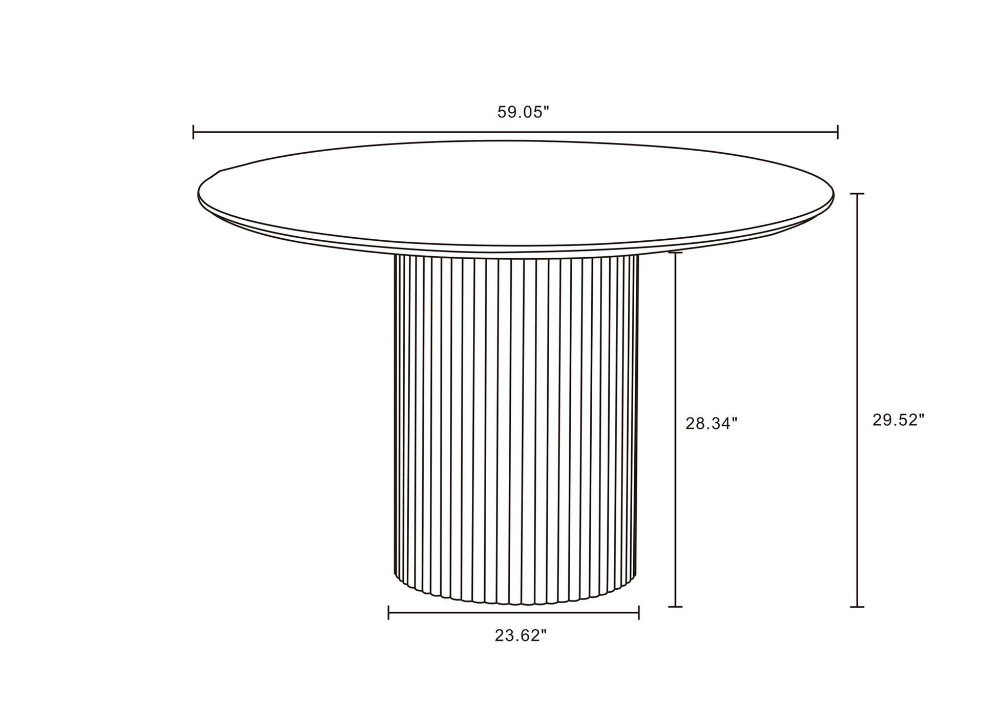 - Upon assembly, Dining Table Dimensions Measure: 59.05 in. Length, 29.52 in. Height, 59.05 in. Depth.