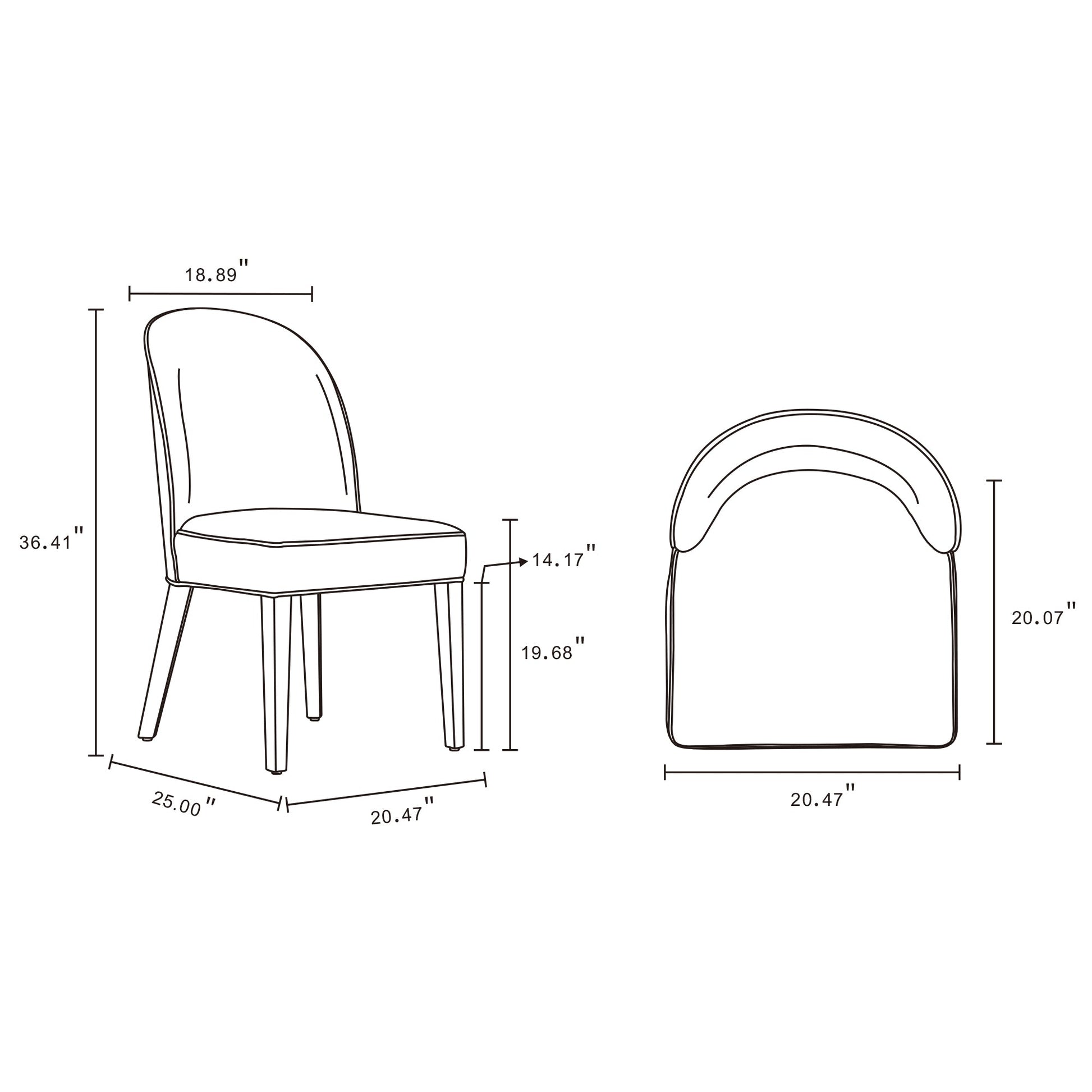 - Dining Chair Dimensions Measure: 20.47 in. Length, 36.41 in. Height, 25 in. Depth.