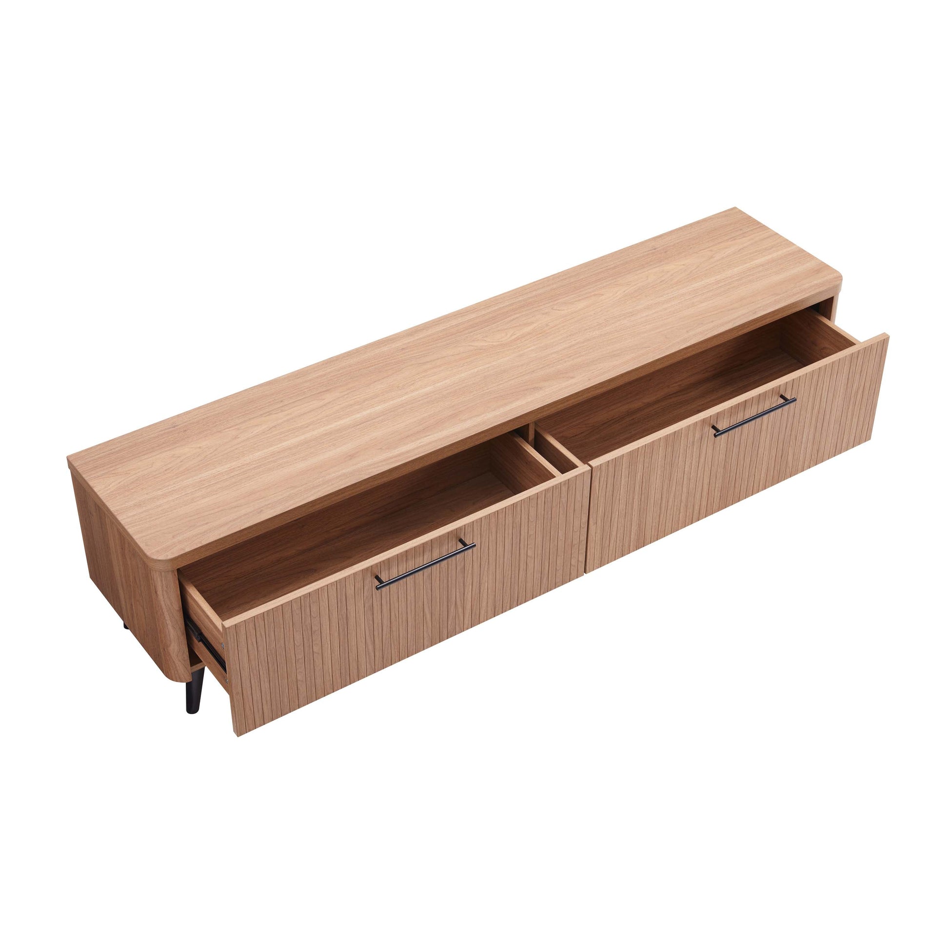 Introducing the Jodie Collection, a stunning new addition to the realm of Mid-Century Modern design. Crafted from premium manufactured wood, each piece in this collection showcases exquisite wood ribbed drawers and doors, adding a textured sophistication to your living space. The sleek black metal handles complement the splayed metal legs, creating a harmonious blend of elegance and contemporary flair. The Jodie Collection redefines style and function, offering timeless pieces that seamlessly enhance your home’s decor with a touch of modern nostalgia.