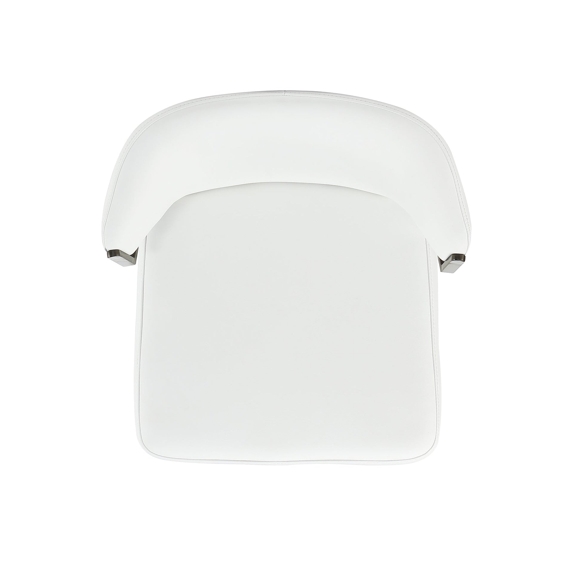 This chair is where contemporary elegance meets sculptural design. Wrapped in smooth leatherette, it features a gracefully curved back and open sides that bring lightness to its bold form. The sturdy metal frame adds a refined contrast, while the plush seat ensures comfort that lasts. It’s a statement piece made to elevate the everyday.