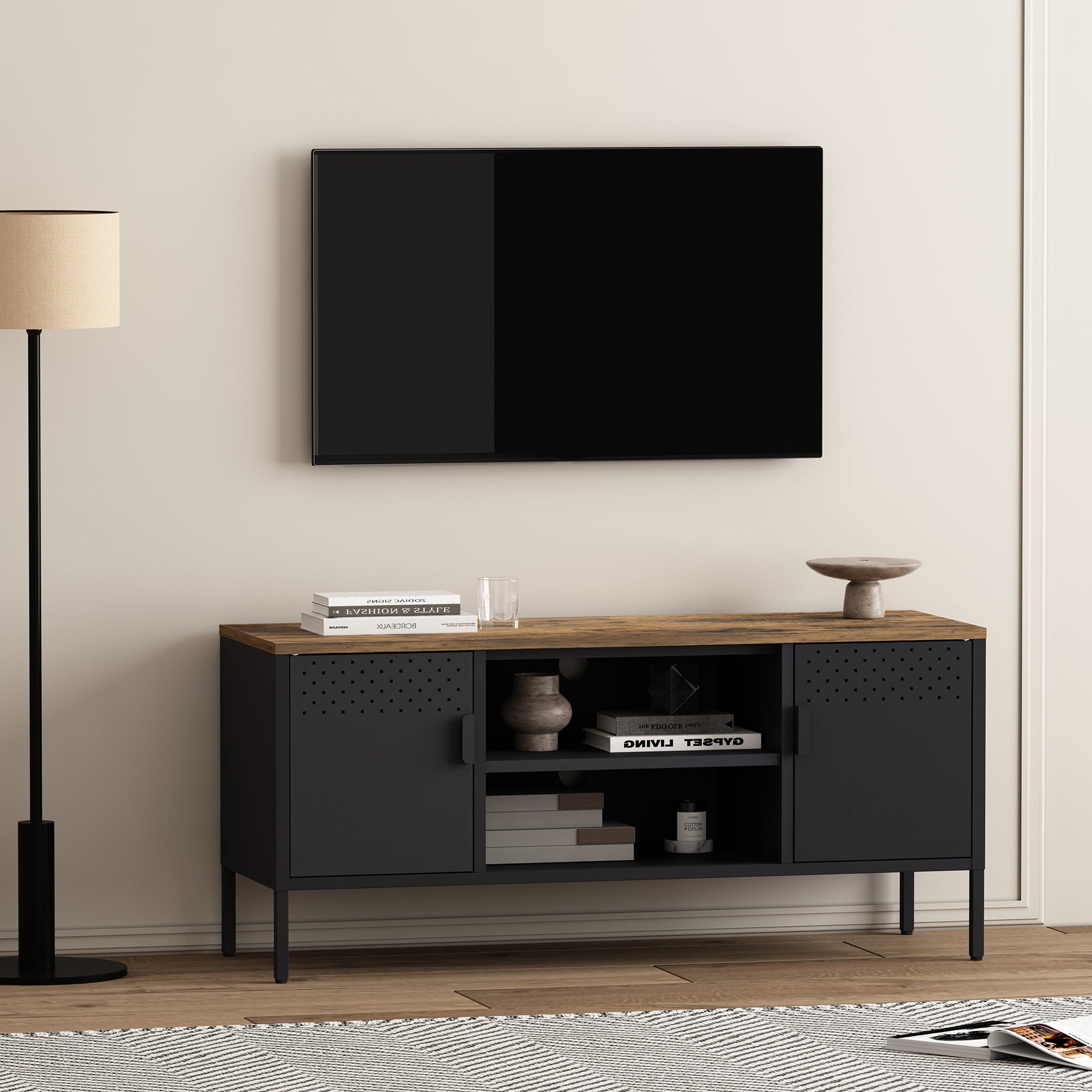 - Modern Metal TV Stand for Living Room Use.