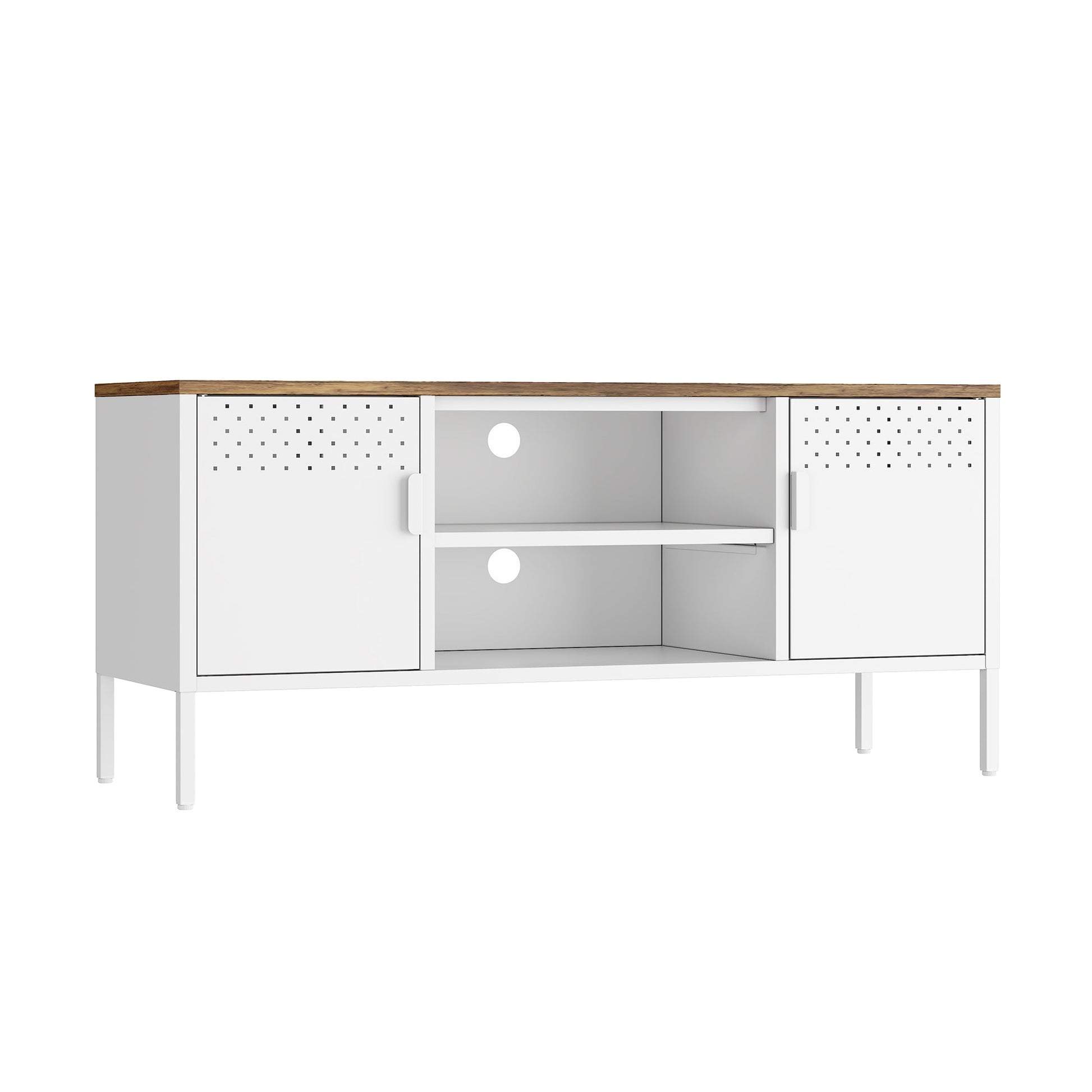- Features 2 Media Holes for Media Cable Management.