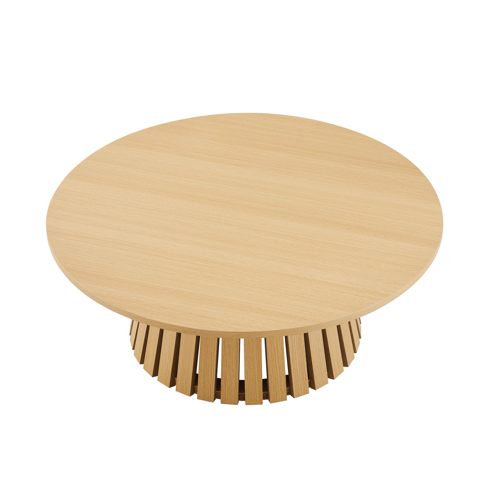 Embrace the timeless beauty of this collection, where art meets function in a perfect harmony of design. The unique conical slatted base creates an elegant, sculptural silhouette that adds warmth and texture to any room, while the smooth, round tabletop invites moments of connection and conversation. With its modern charm and understated sophistication, this collection transforms everyday spaces into intimate havens, offering a seamless blend of style and comfort that feels both fresh and timeless.