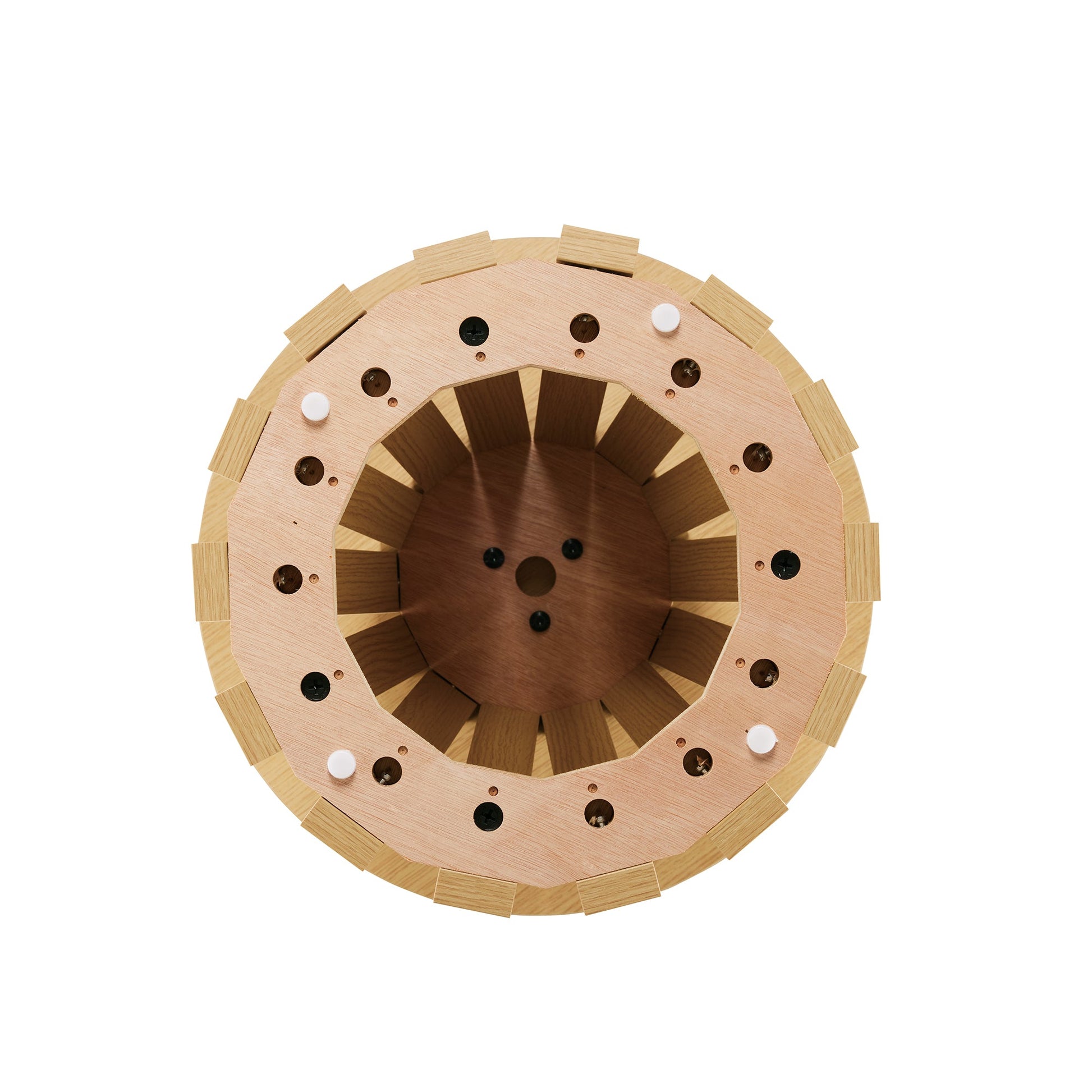 Embrace the timeless beauty of this collection, where art meets function in a perfect harmony of design. The unique conical slatted base creates an elegant, sculptural silhouette that adds warmth and texture to any room, while the smooth, round tabletop invites moments of connection and conversation. With its modern charm and understated sophistication, this collection transforms everyday spaces into intimate havens, offering a seamless blend of style and comfort that feels both fresh and timeless.