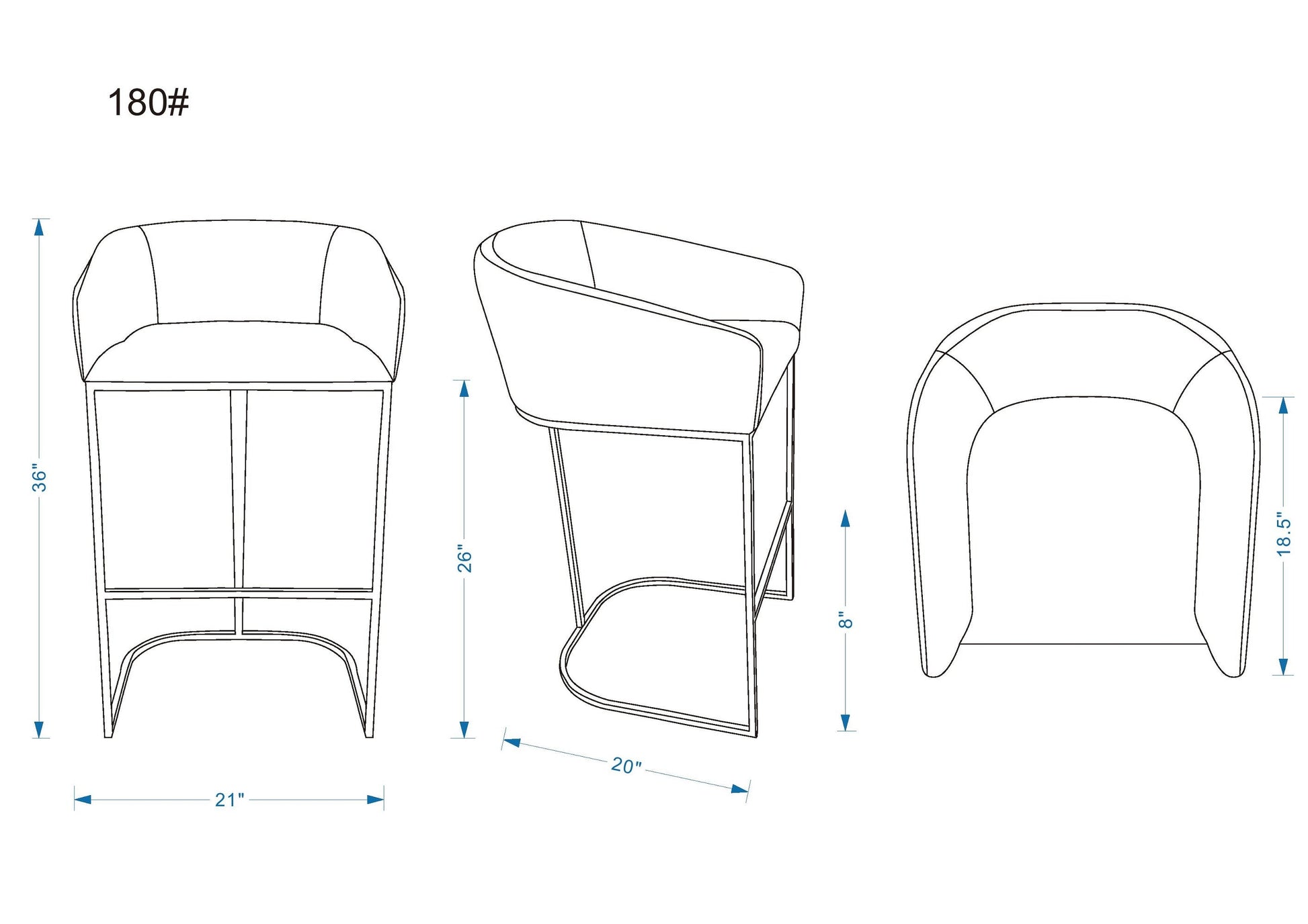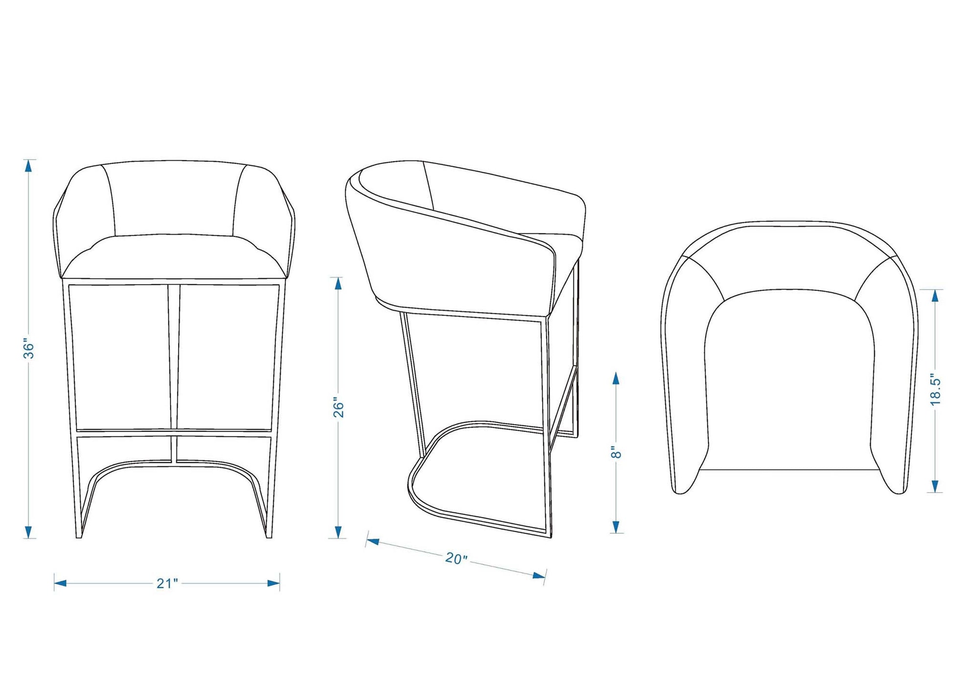 - Counter Stool Dimensions Measure: 20 in. Length, 36 in. Height, 21 in. Depth.