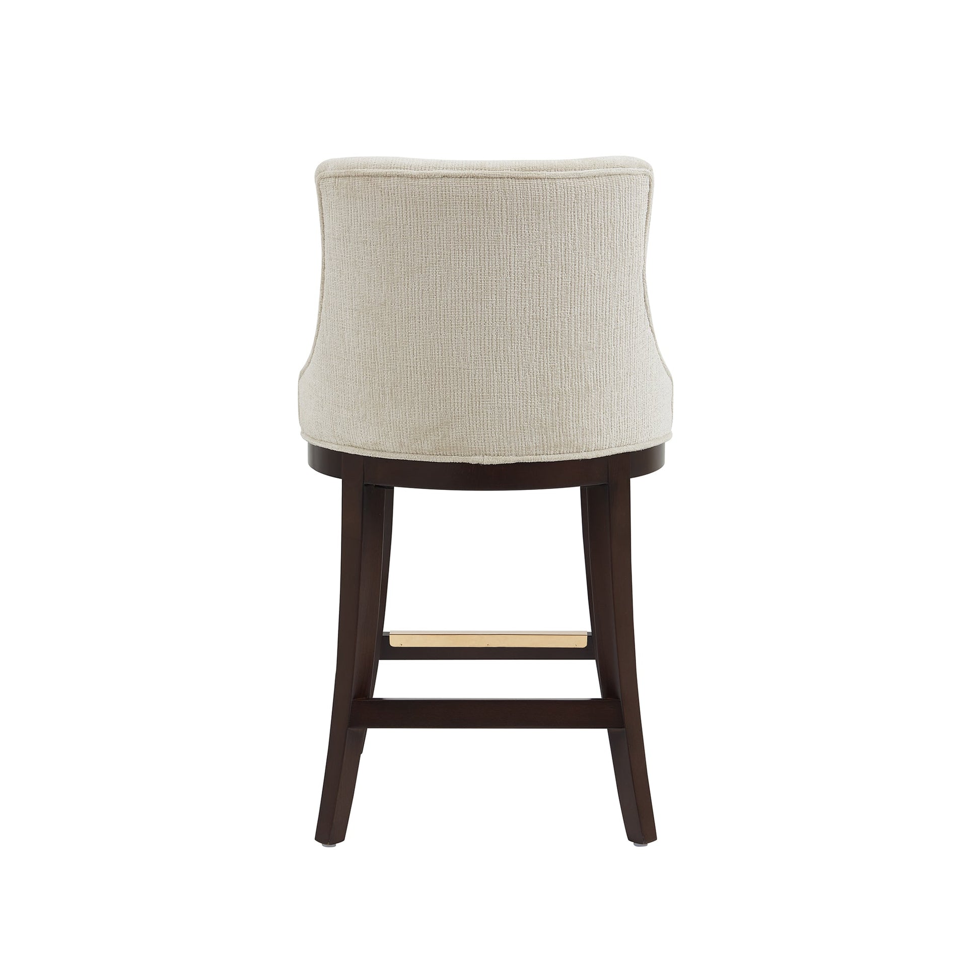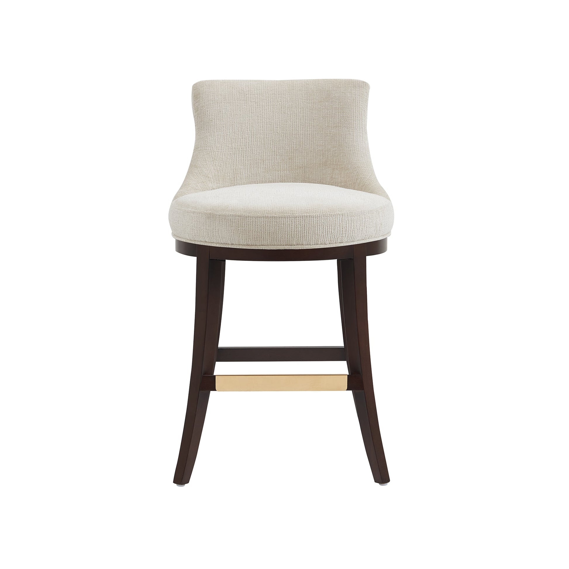 Elevate your everyday seating with a stool that blends tailored elegance and thoughtful comfort. Wrapped in richly textured chenille, this stool invites you in with a curved backrest, offering both style and support. The generously cushioned seat and the dark walnut wood frame grounds the piece with a timeless warmth. A gleaming gold footrest adds a refined touch, making this stool a perfect companion for your everyday.