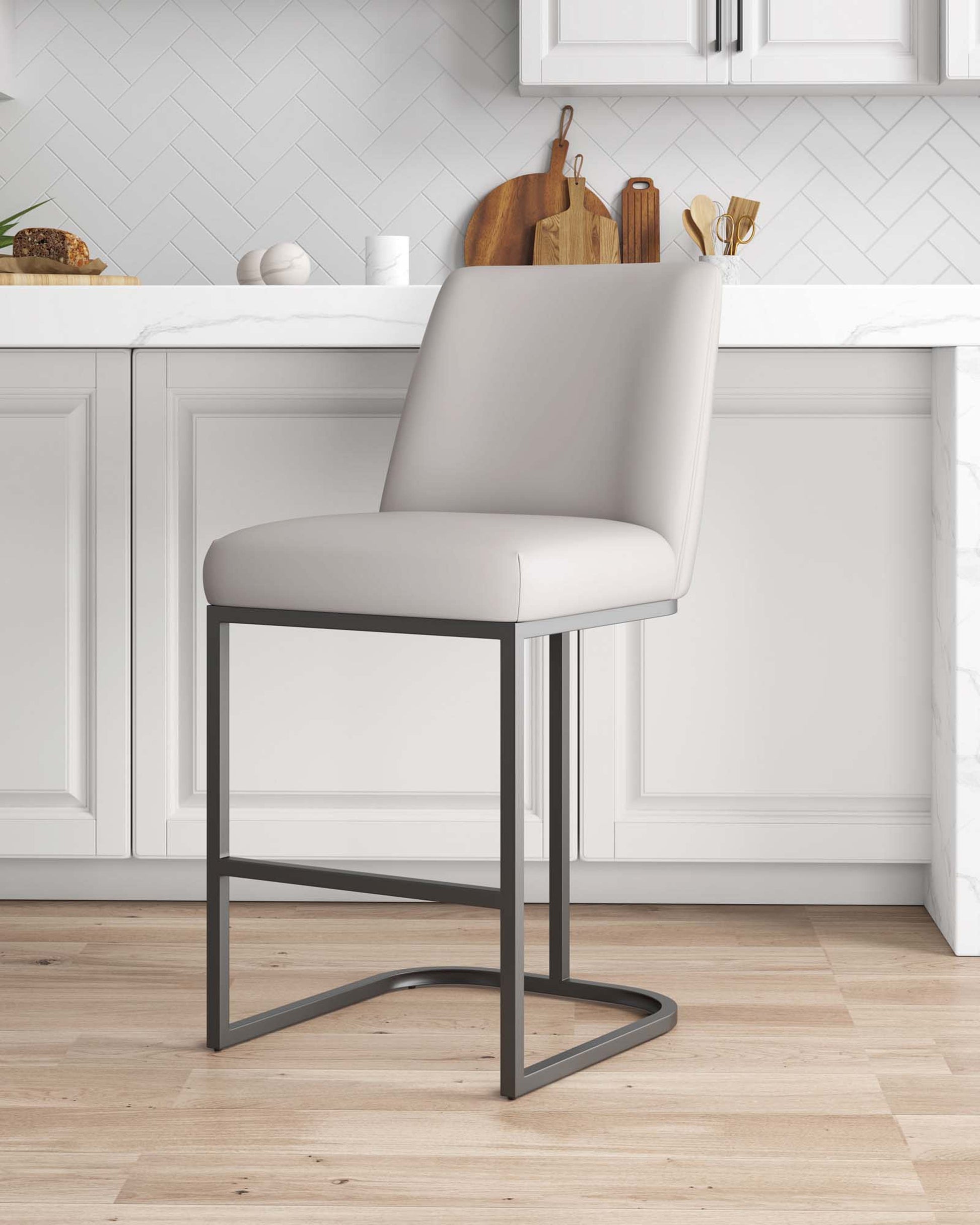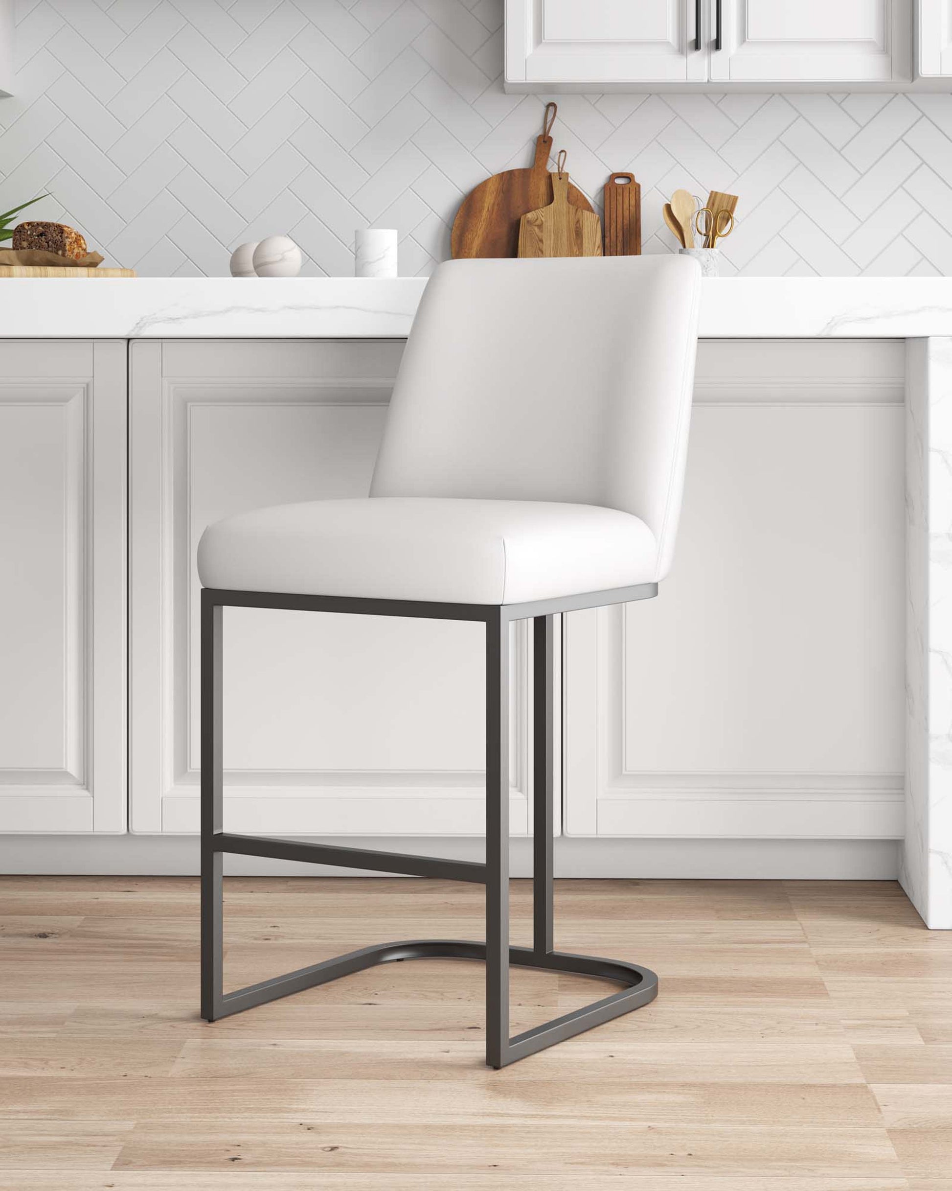 Indulge in the epitome of contemporary luxury with this sophisticated counter stool. Upholstered in sleek leatherette, its inviting seat promises both comfort and style, while the open metal base adds a touch of modern flair. Elevate your bar or kitchen counter with this chic design, where the marriage of plush comfort and industrial aesthetics creates the perfect perch for sipping cocktails or engaging in lively conversations.