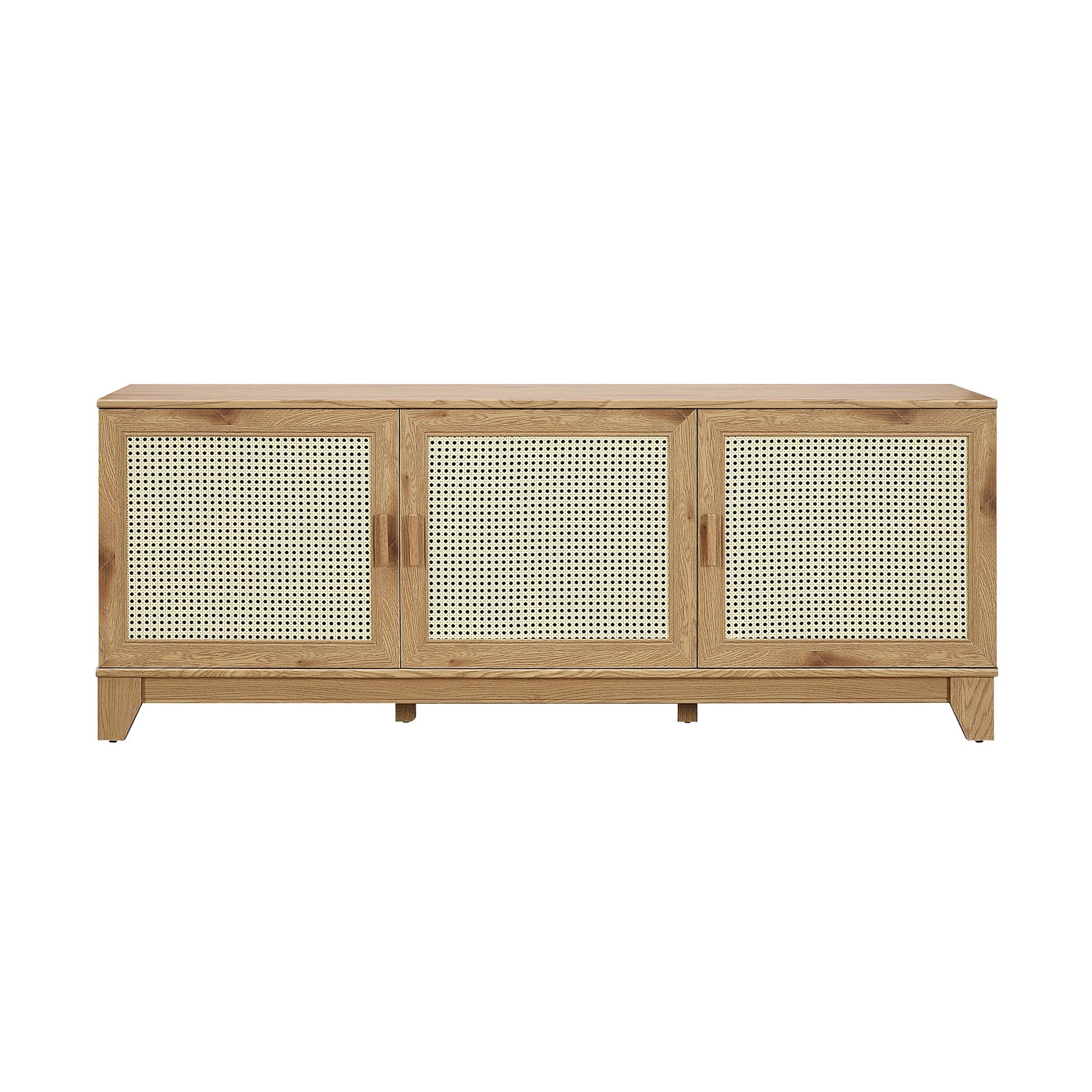 - Modern Cane Free Standing TV Stand for Living Room Use.