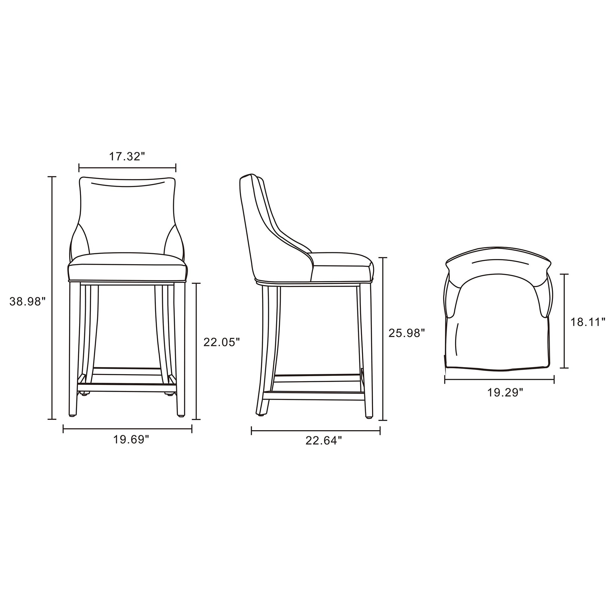 • Counter Stool Dimensions Measure: 22.64 in. Length, 38.98 in. Height, 19.69 in. Depth.
