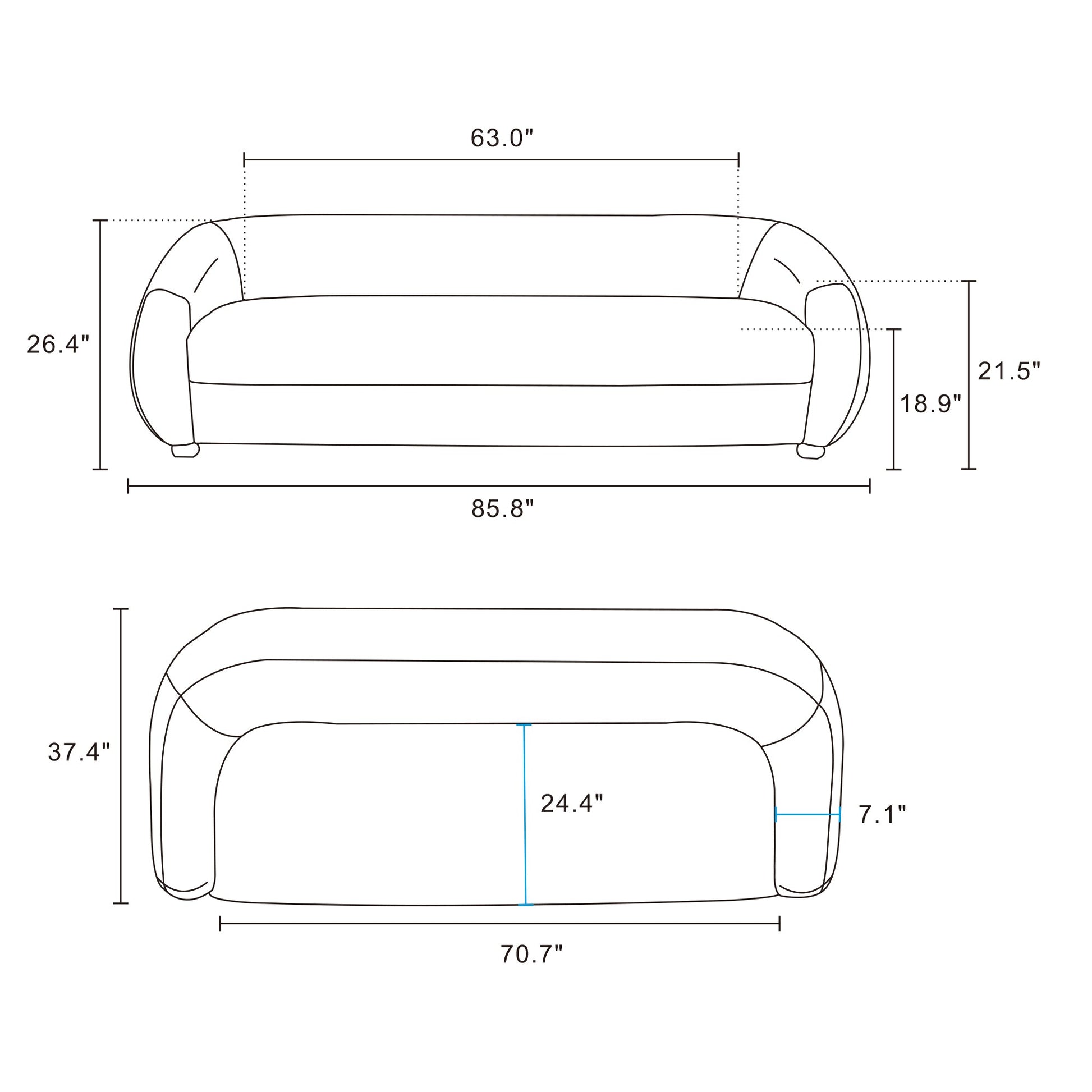 - Sofa Dimensions Measure: 85.8 in. Length, 26.4 in. Height, 37.4 in. Depth.