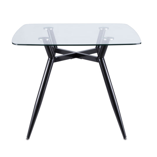 Majestic Office Furniture Mid-Century Modern Square Dining Table with Black Metal Legs and Clear Glass Top